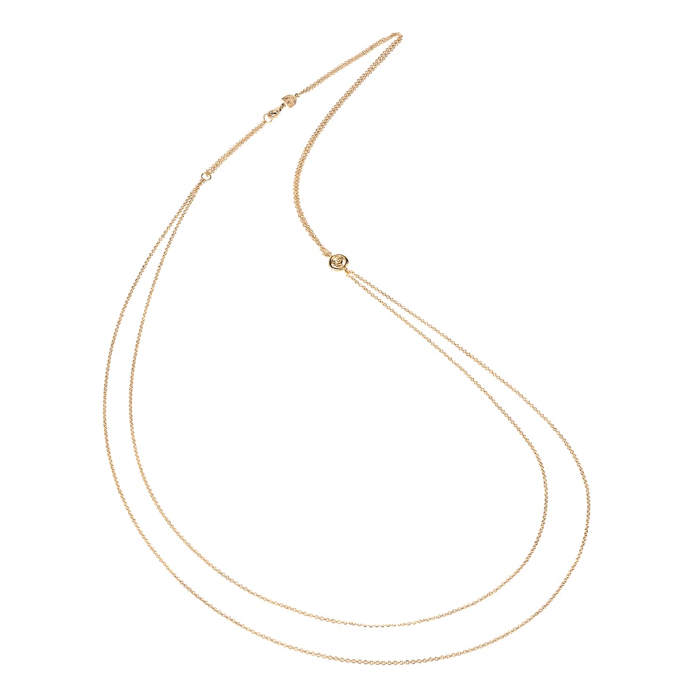 SKU: 29599Chantecler Catena lunga rolò doppia 80 cm in oro giallo 18Kt con logo galletto intercalare