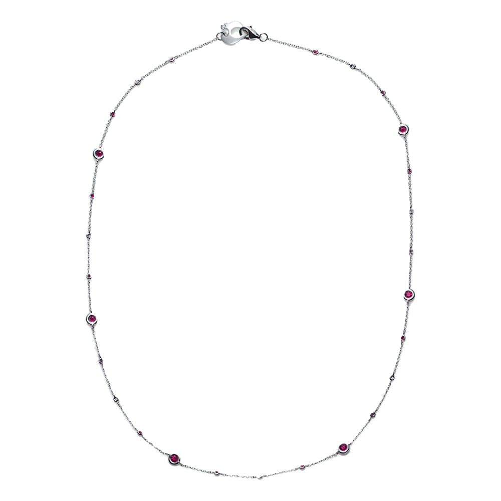 Catena corta Capri 42 cm in oro bianco 18Kt, diamanti e rubini
