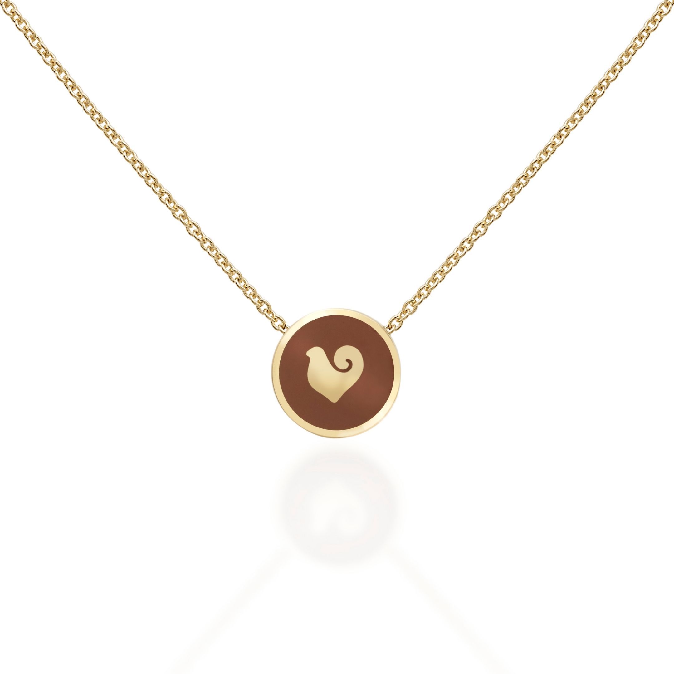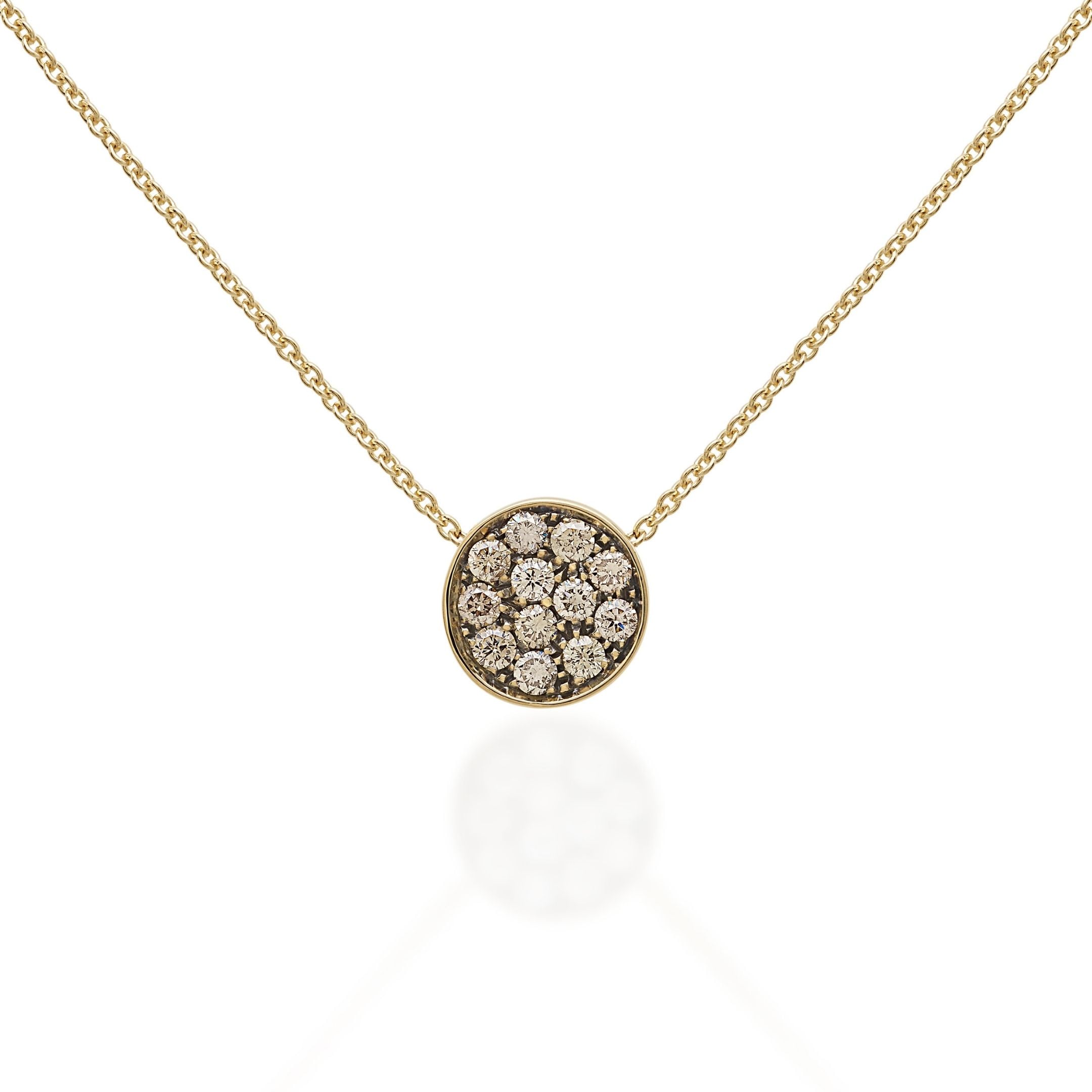 Collana lunghezza 40/42cm con pendente Paillettes in oro giallo 18 Kt, pavè di diamanti Champagne e smalto caramello