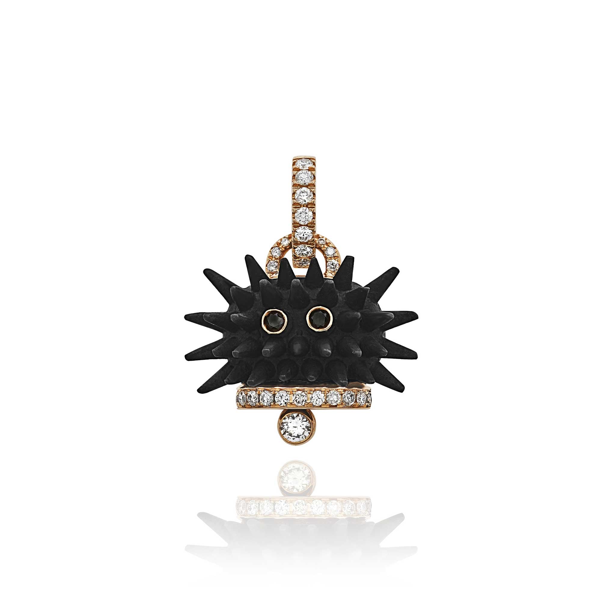 SKU: 42421Ciondolo Campanella Riccio medio in oro rosa 18Kt, diamanti, diamanti neri e titanio nero