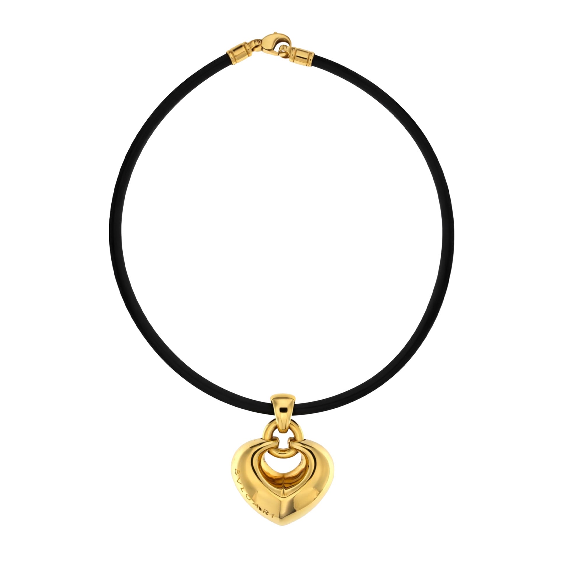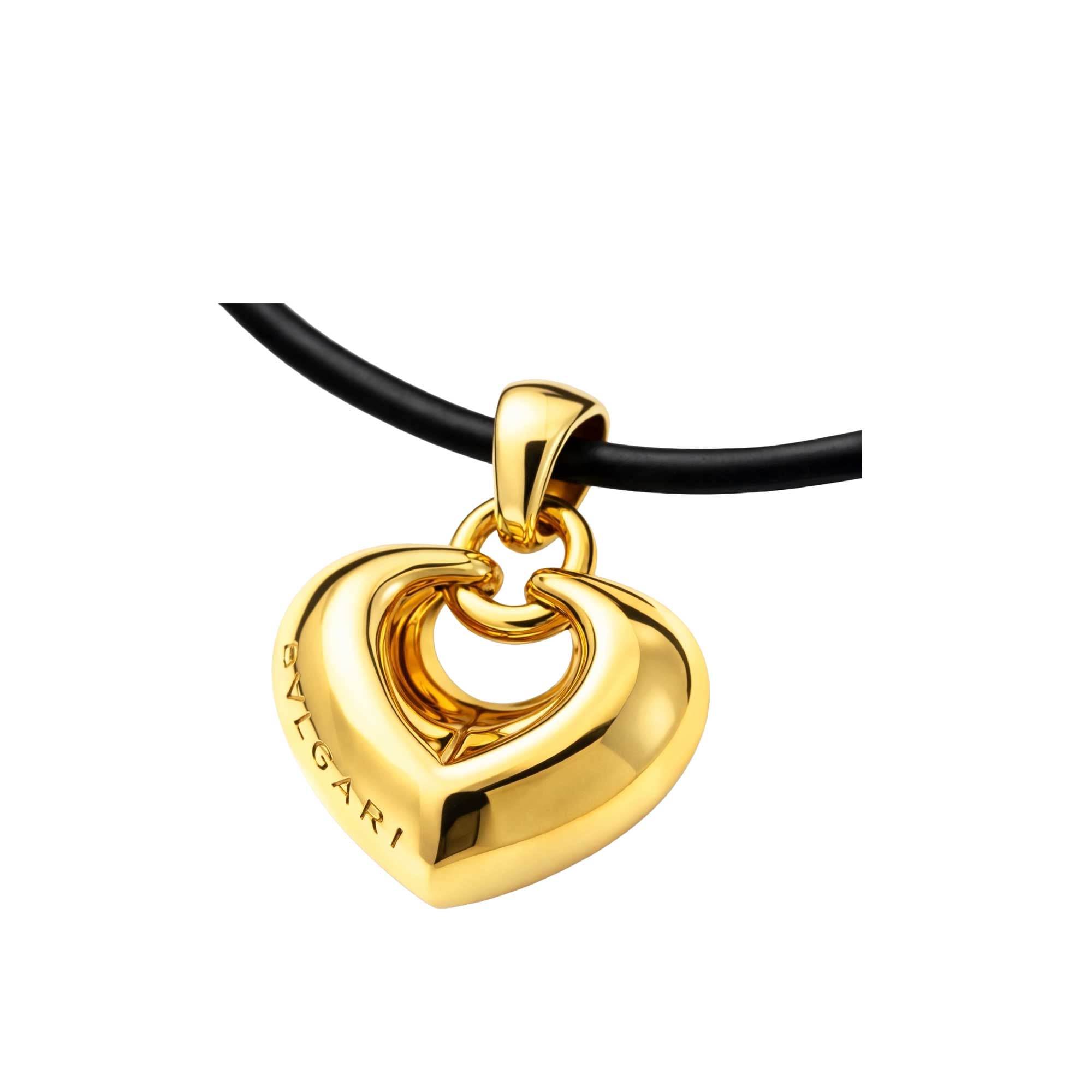 Ciondolo cuore Bulgari oro giallo con laccio caucciù e moschettone oro