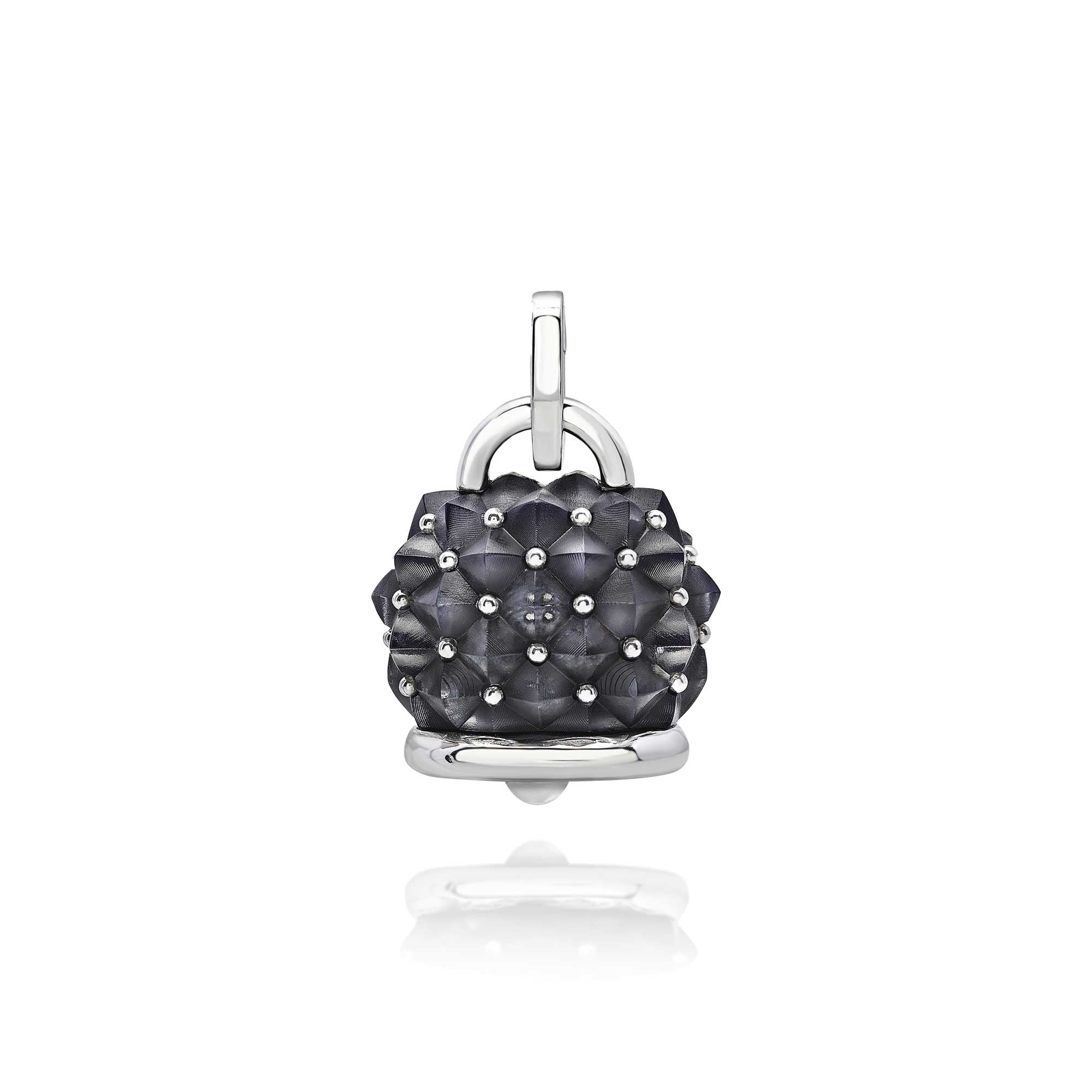SKU: 43397Ciondolo Et Voilà Campanella maxi Rebel in resina color fumè a cuspide e argento.