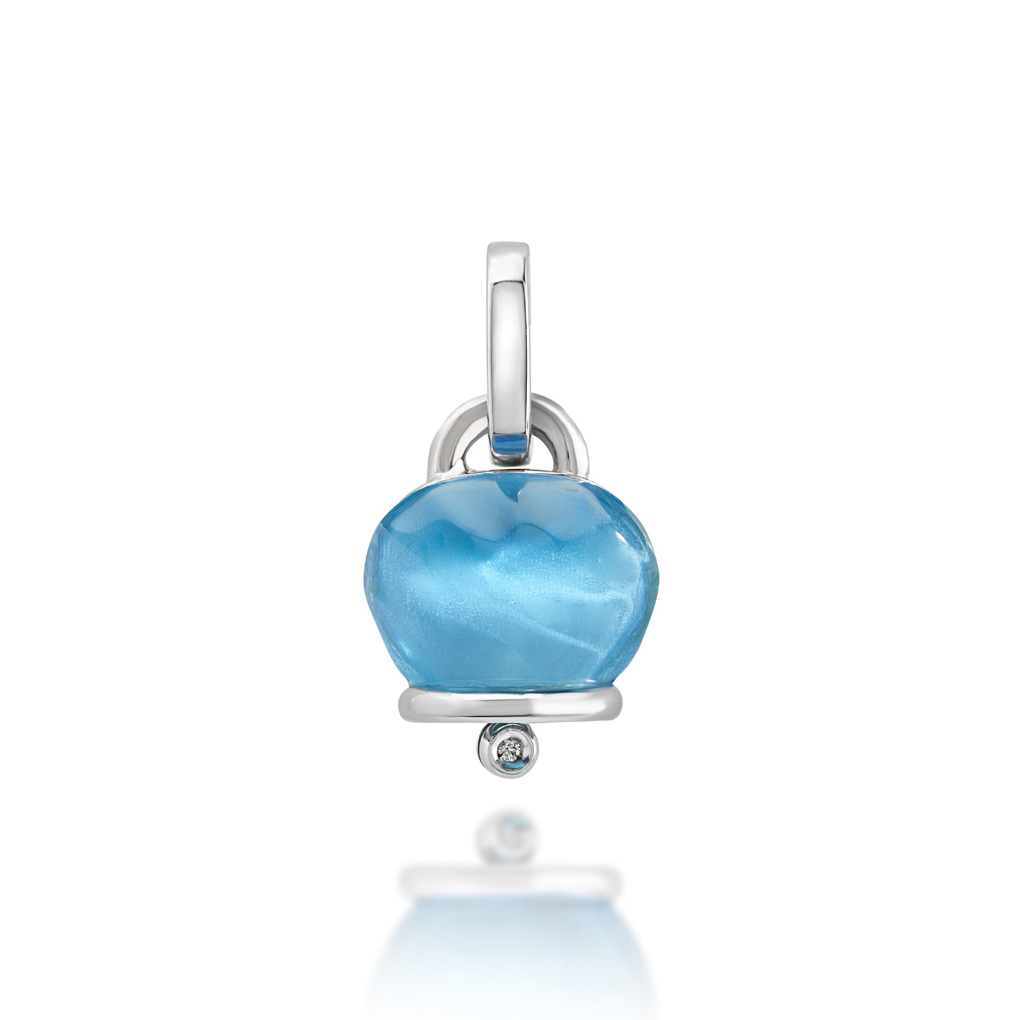 SKU: 43003Ciondolo Et Voilà Campanella medio in argento, resina sfaccettata a mano color topazio azzurro e un diamante.