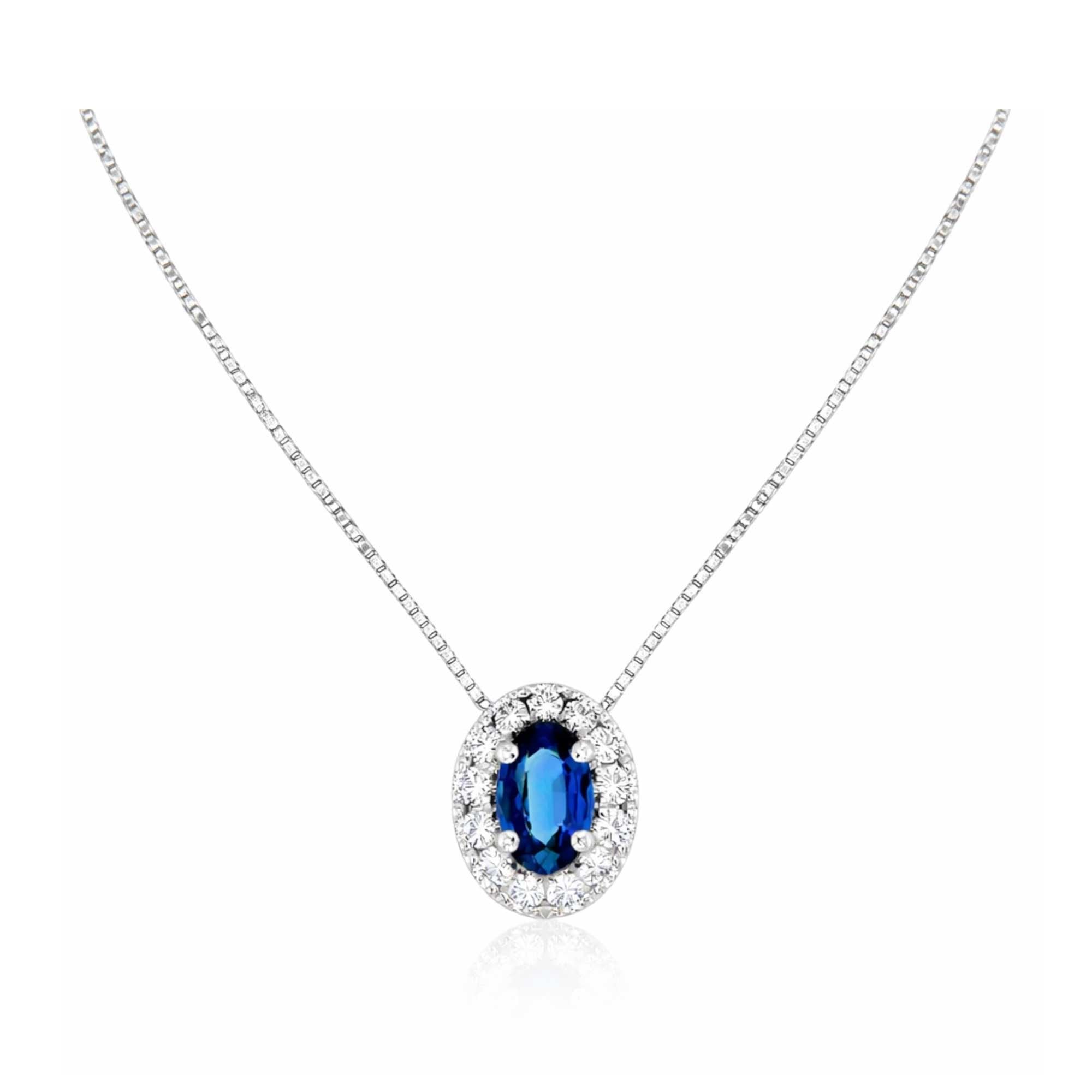 Collana Oro bianco Ciondolo diamanti e zaffiro