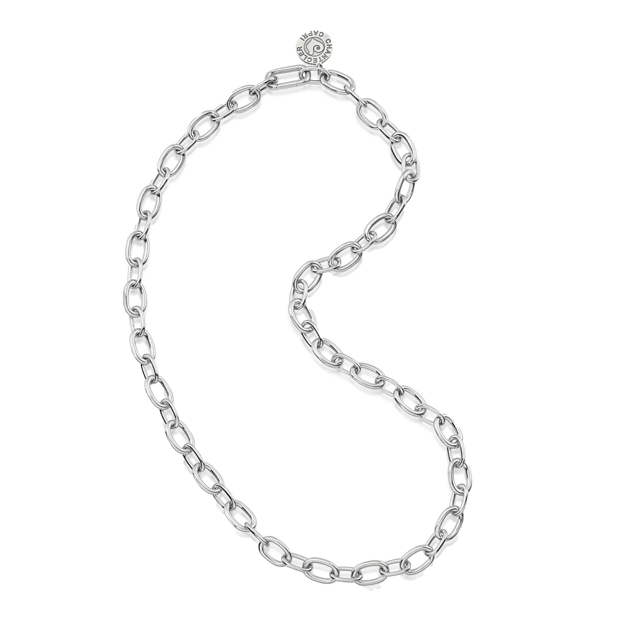 SKU: 42975Catena 50 cm maglie ovali in argento con logo Chantecler.