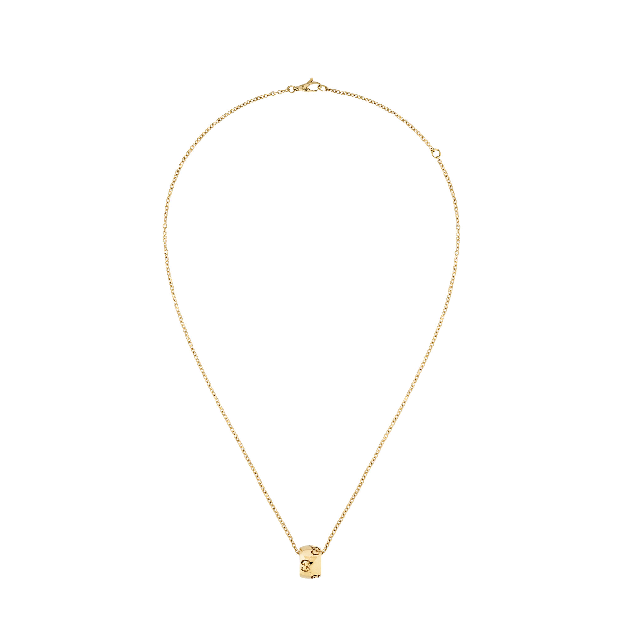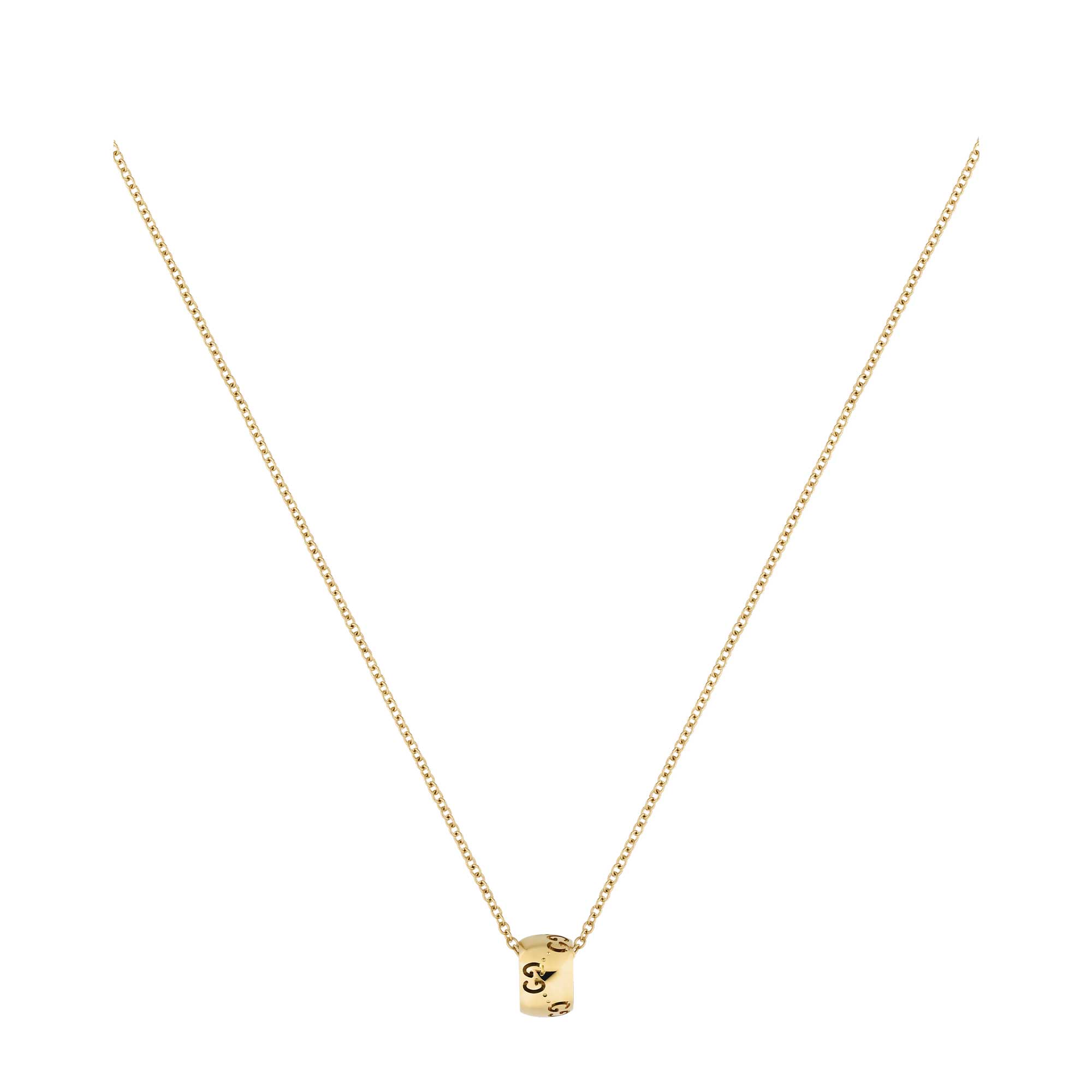 Per la collezione Autunno Inverno 2024, i gioielli Icon presentano un nuovo motivo GG cut-out sulle silhouette arrotondate. Qui, il caratteristico motivo della Maison impreziosisce il pendente di questa collana in oro giallo 18 carati. Le collane sono regolabili per una pratica vestibilità.