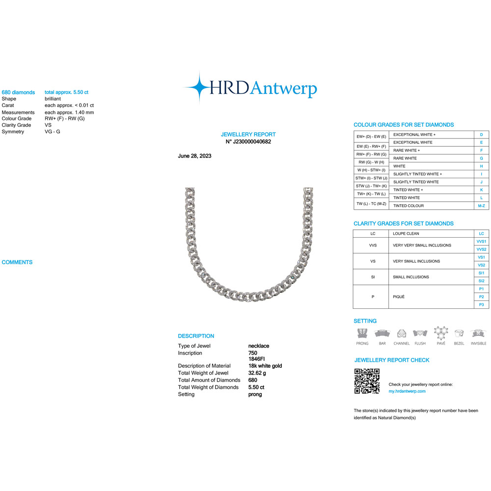 collana grumette oro bianco con brillanti full certificato HRD Antwerp