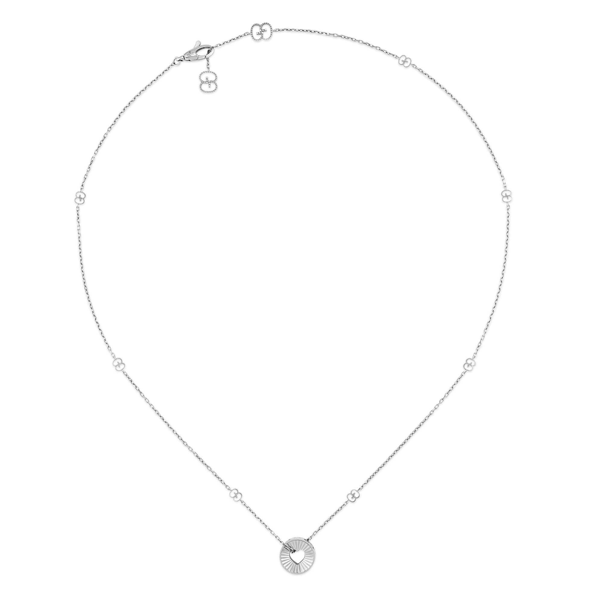 Le nuove silhouette della linea Icon offrono nuove versioni raffinate e contemporanee di modelli iconici. Intricati dettagli incisi offrono un tocco magico, come il motivo a cuore che continua ad apparire come un simbolo amato dalla Maison insieme all’emblematico logo GG. Qui entrambi i simboli fanno parte di questa preziosa collana in oro rosa 18 carati.