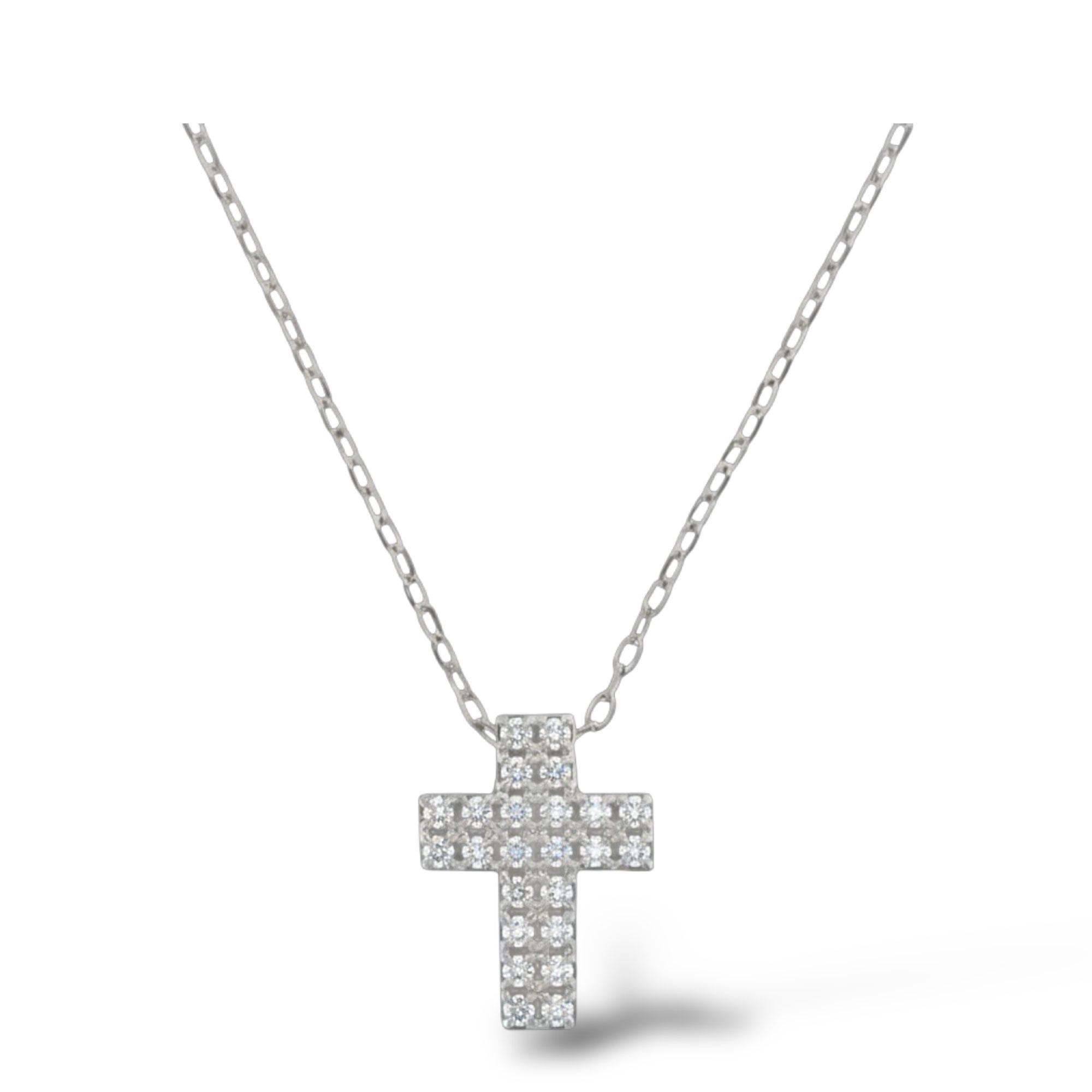SKU: CLF67-010Collana oro bianco 18 ct con croce brillanti del peso di 0,10 ct.