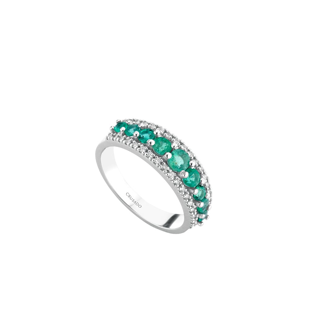 Fedina in oro bianco con rubini e brillanti.