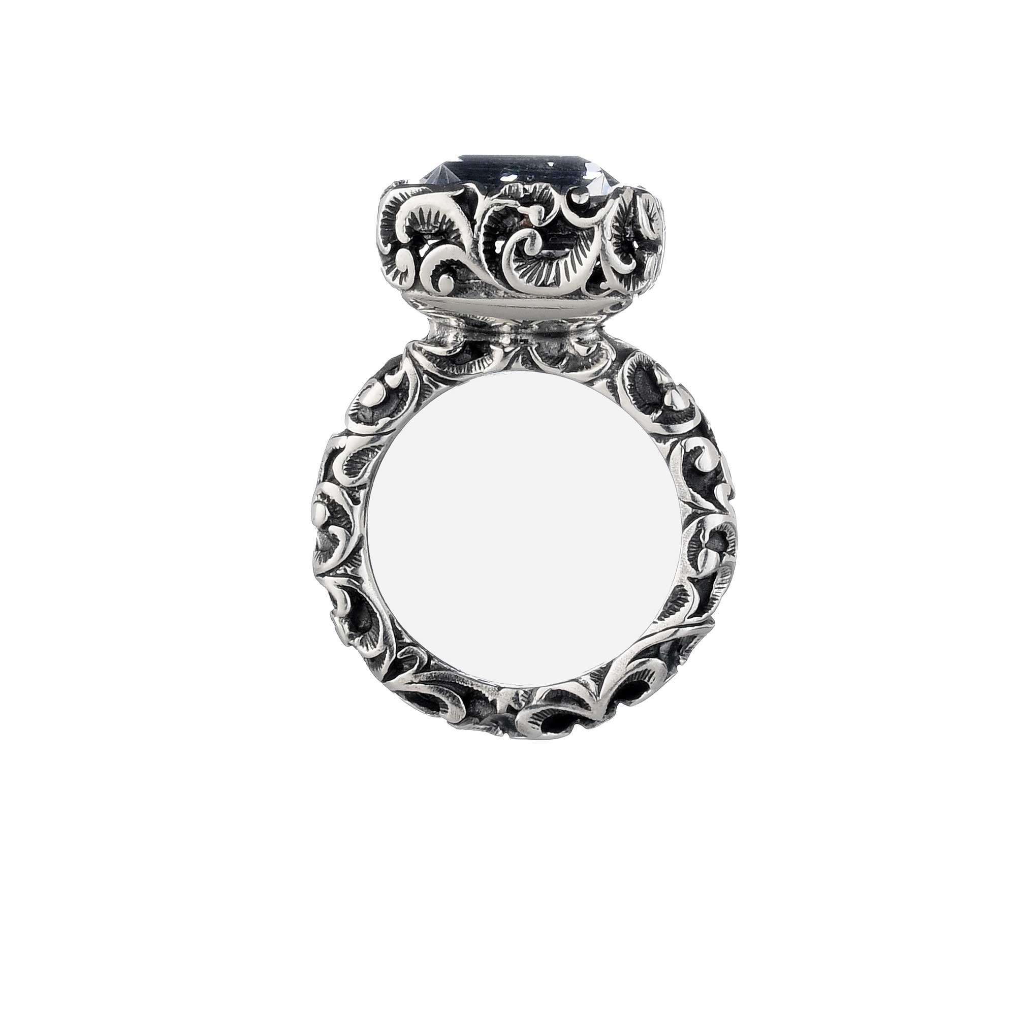 SKU: AA0093_CRAnello solitario in argento brunito con pietra taglio solitario.