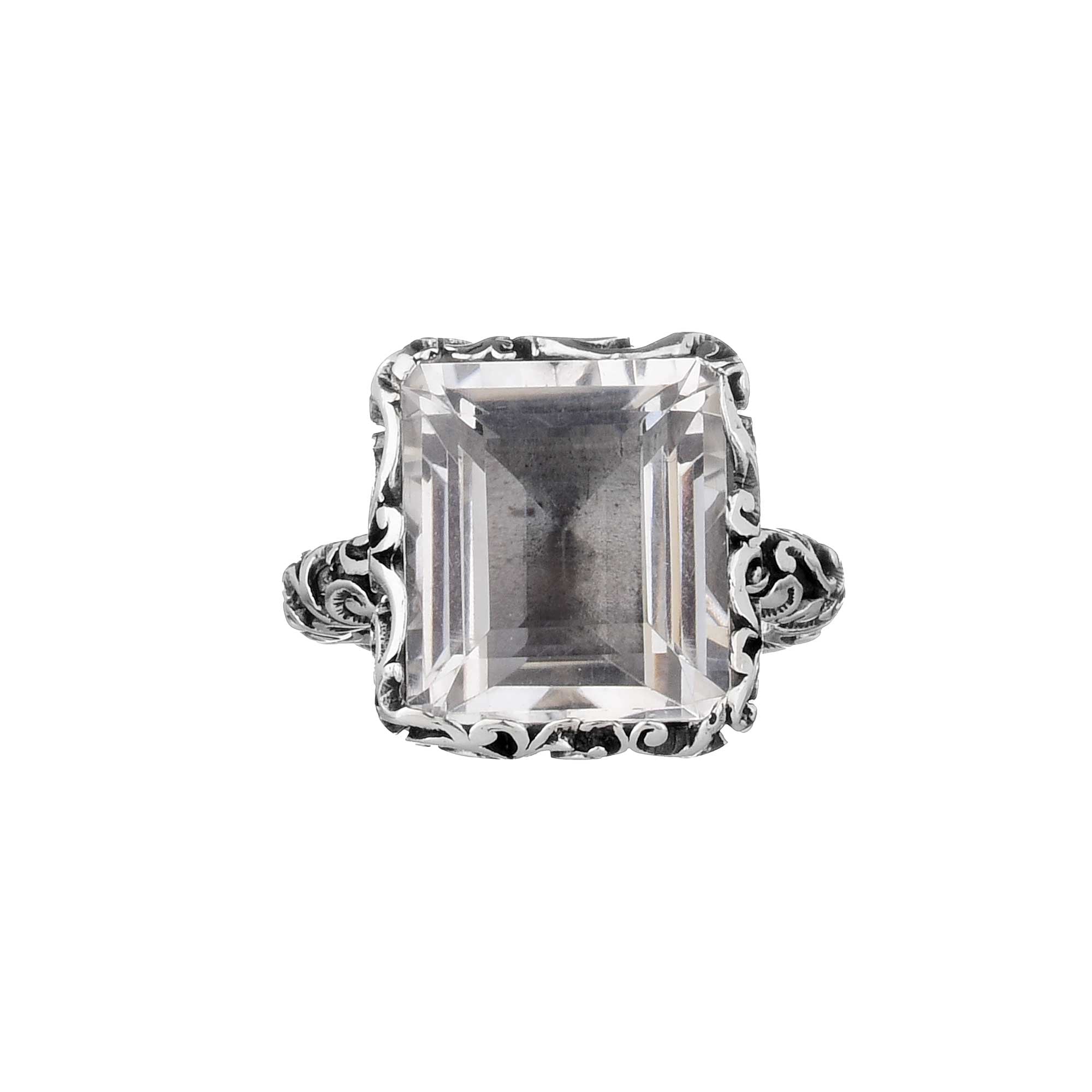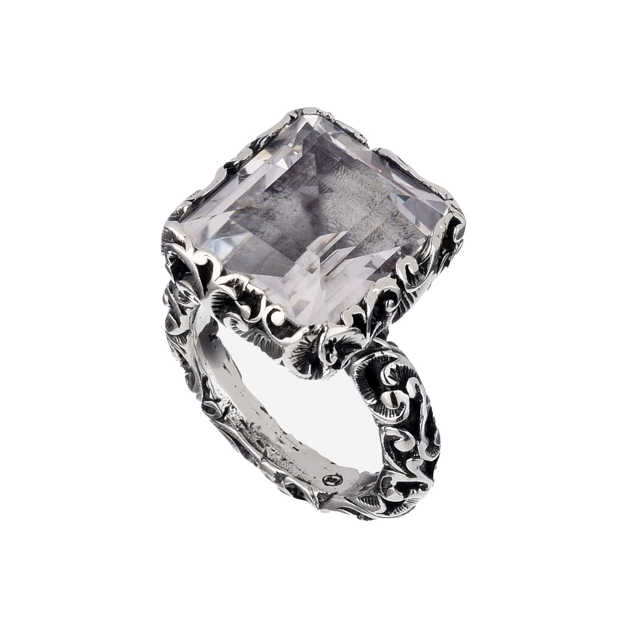 Groumette Anello solitario con cristallo di rocca Solitario taglio smeraldo