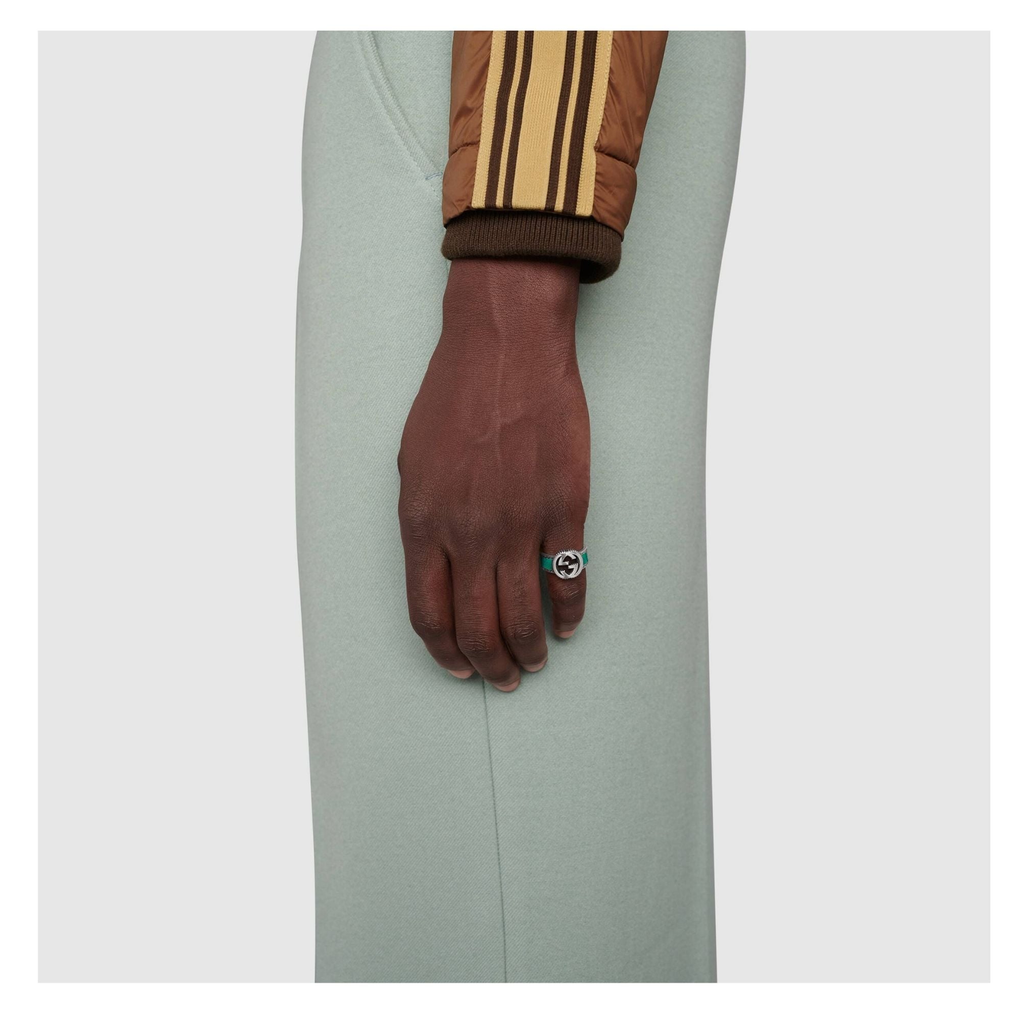 GUCCI Anello Interlocking con logo GG e smalto turchese