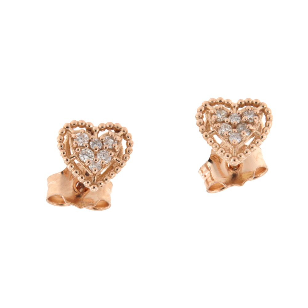 I gioielli del sole orecchini in oro rosa a forma di cuore con brillanti 0,10 ct