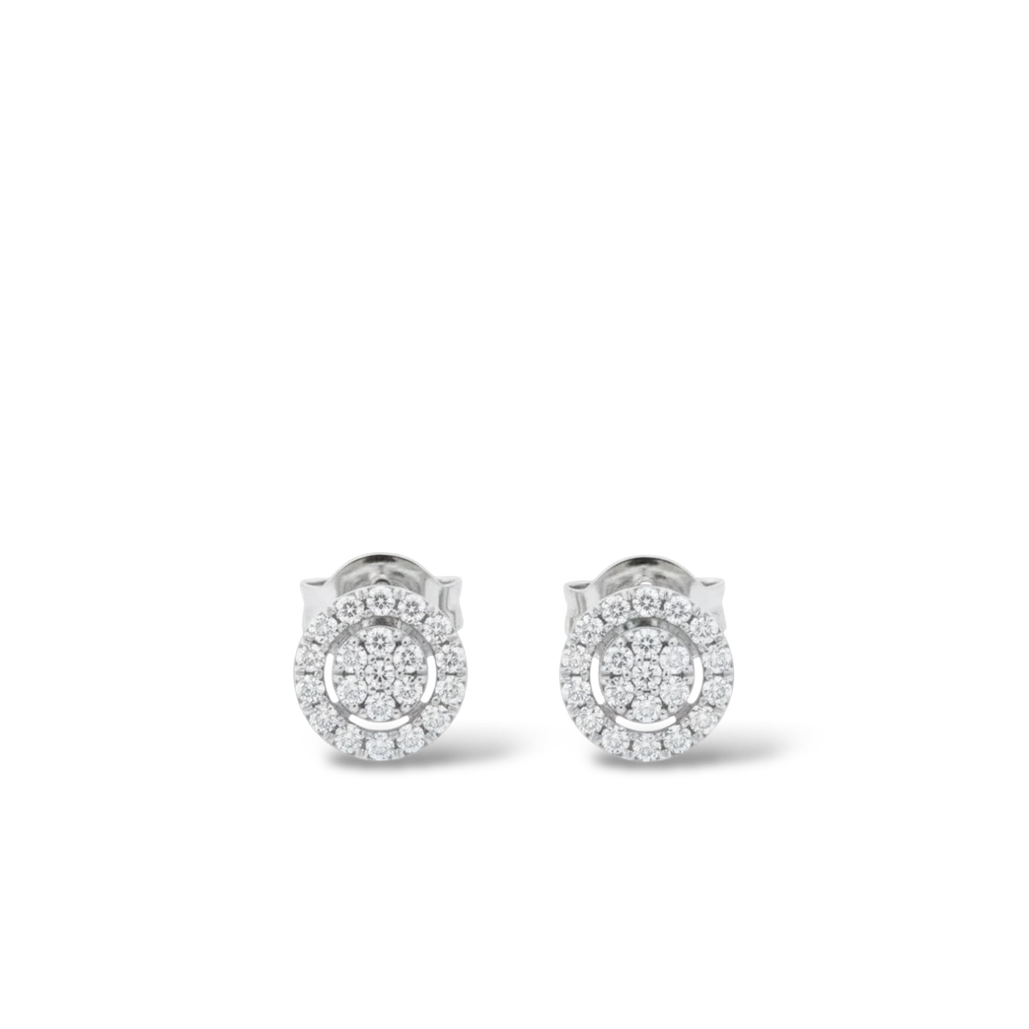 SKU: ORF101B-024Orecchini tondi fantasia in oro bianco e brillanti.