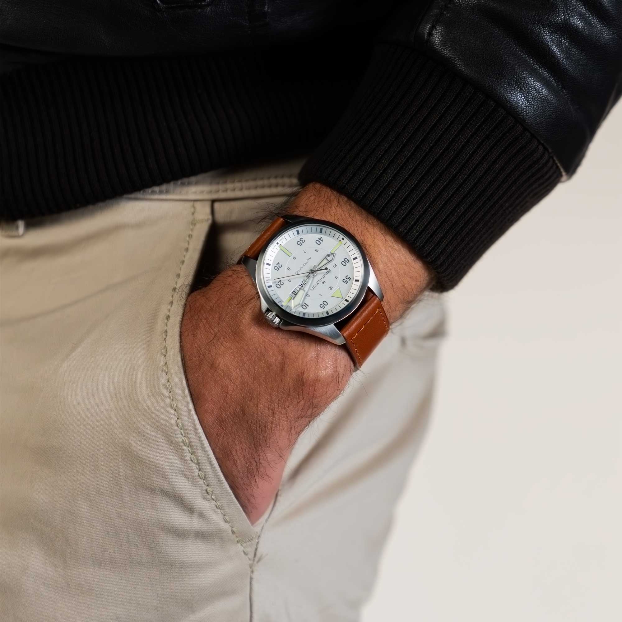 KHAKI AVIATION PILOT DAY DATE AUTO QUADRANTE ARGENTATO