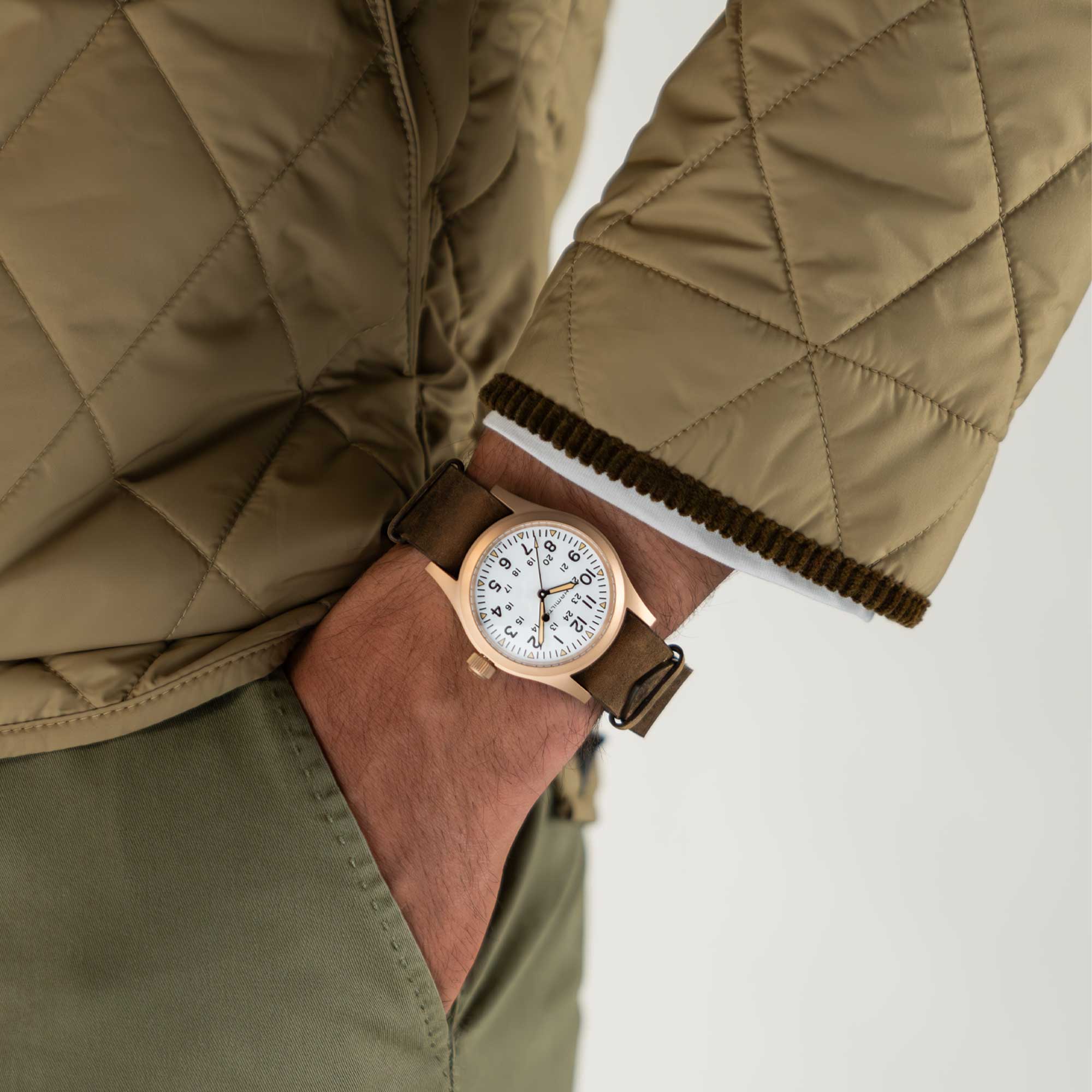 KHAKI FIELD MECHANICAL BRONZE 38 MM QUADRANTE BIANCO