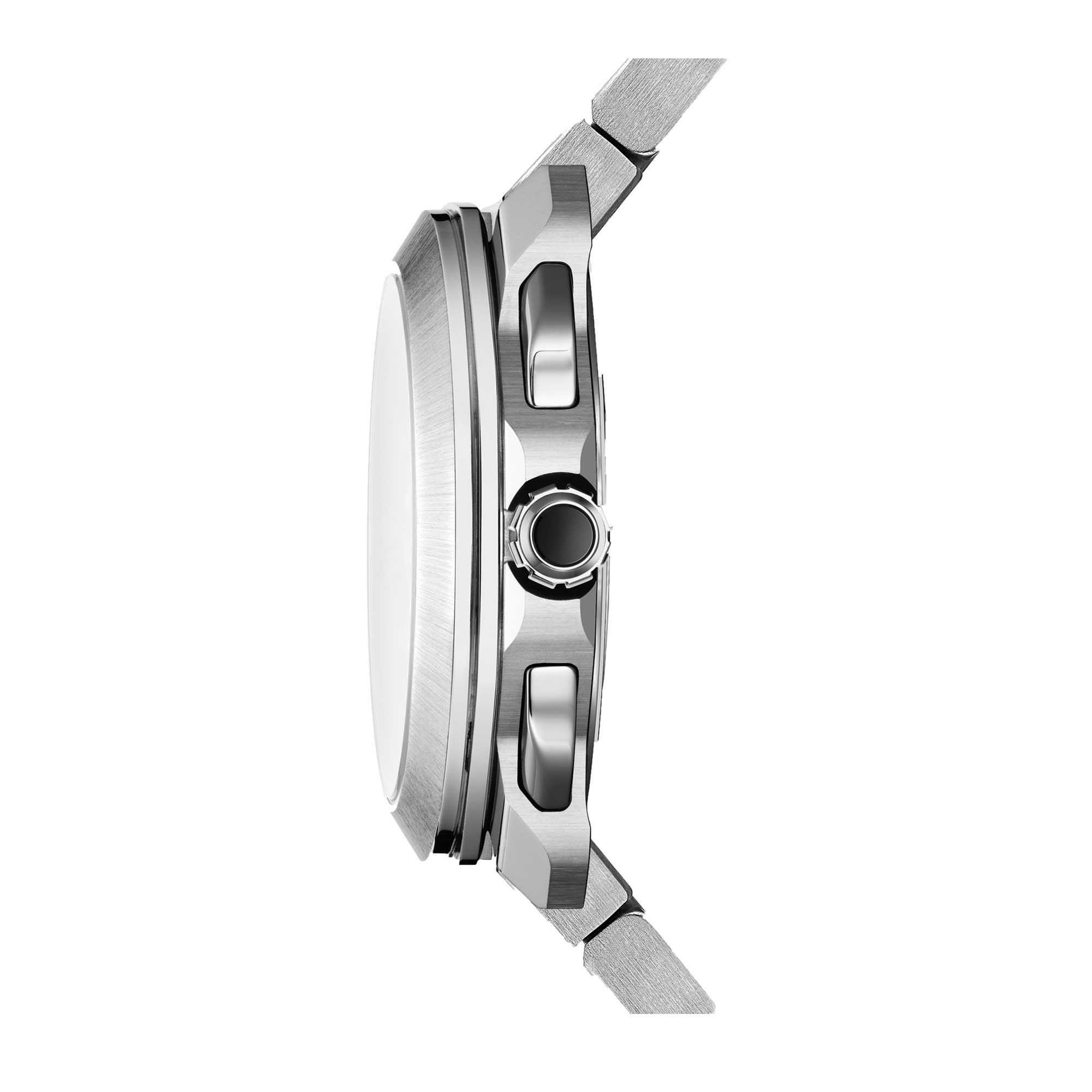 Orologio Octo Roma Automatic con movimento meccanico di manifattura a carica automatica, ore, minuti, secondi e data, calibro BVL 191. Cassa di 41 mm in acciaio inossidabile lucido e satinato-spazzolato, quadrante blu con finiture Clous de Paris, lancette e indici metallici in Super-LumiNova®, finestrella della data a ore 3, corona a vite con sistema protettivo in acciaio inossidabile e bracciale intercambiabile in acciaio inossidabile lucido e satinato-spazzolato. Impermeabile fino a 100 metri.