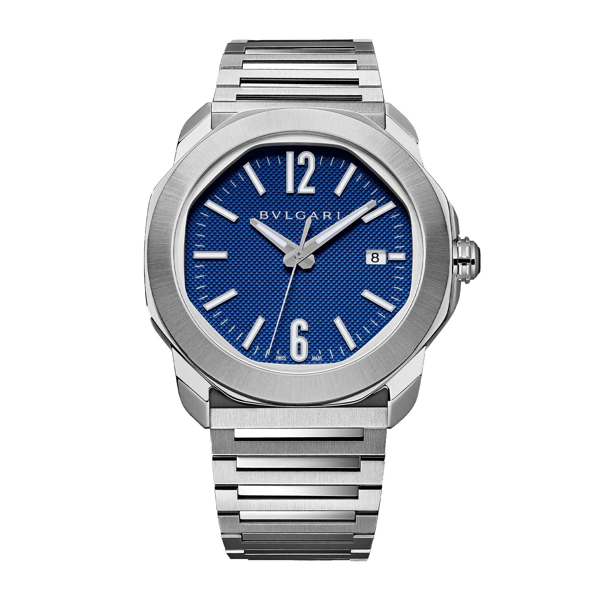 Con la sua magnifica cassa ottagonale dalle forme tondeggianti ma non esattamente tonde, l’orologio Octo Roma Automatic in acciaio inossidabile è espressione di uno stile contemporaneo che unisce ispirazione romana, design italiano e alta orologeria svizzera. Integrando un motivo di Haute Horlogerie nel cuore della sua estetica d’eccezione, l’orologio presenta un quadrante blu con finiture Clous de Paris e lancette e indici in Super-LumiNova®, per una leggibilità ottimale e un effetto visivo accattivante.