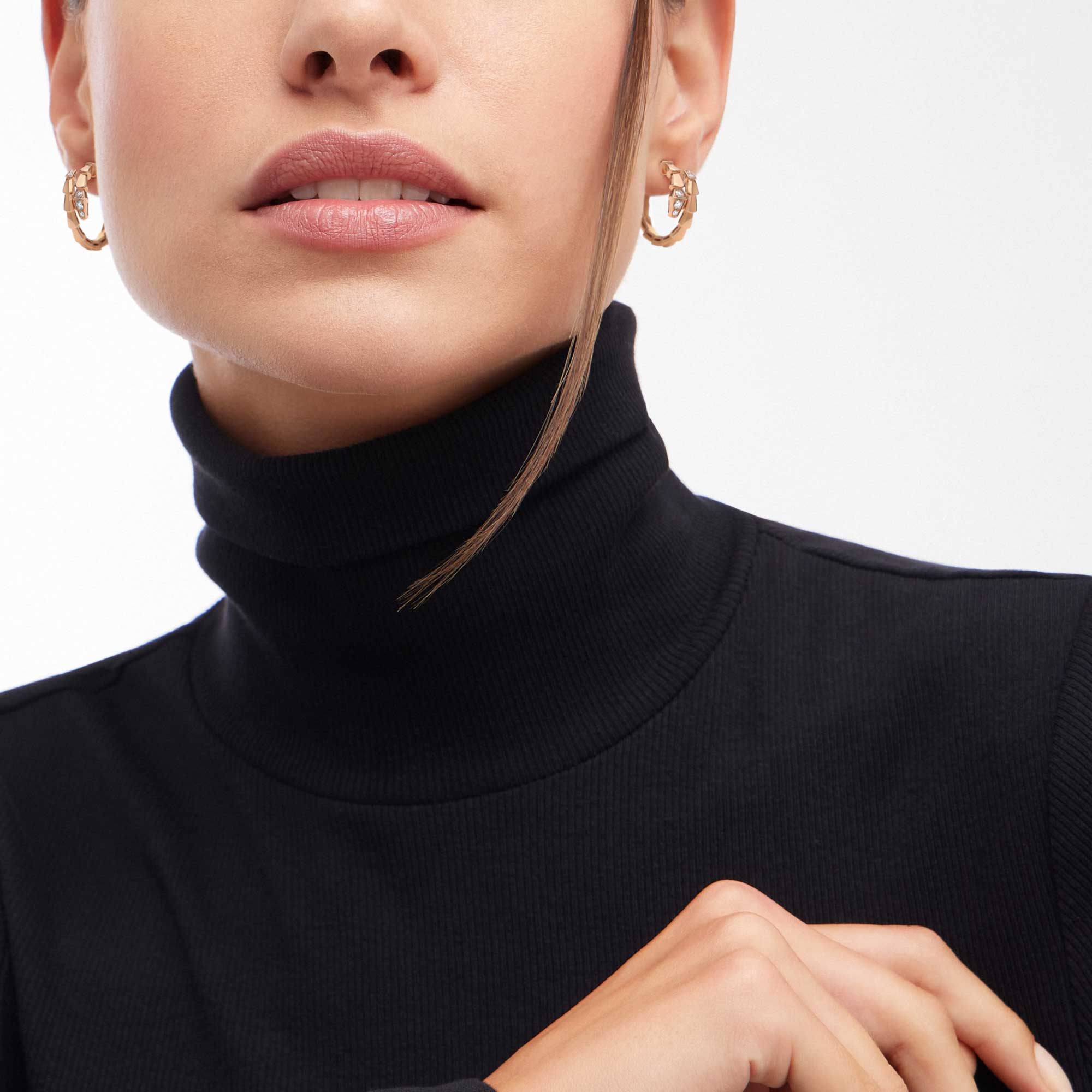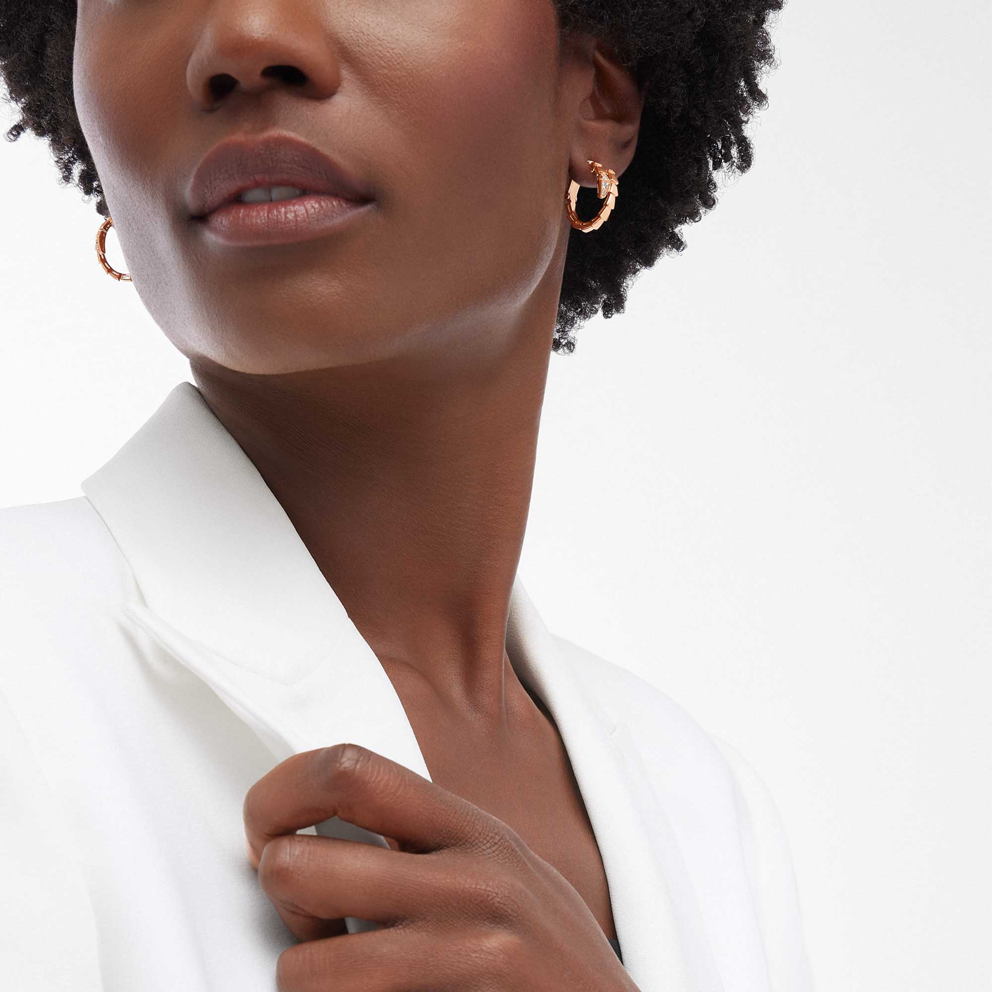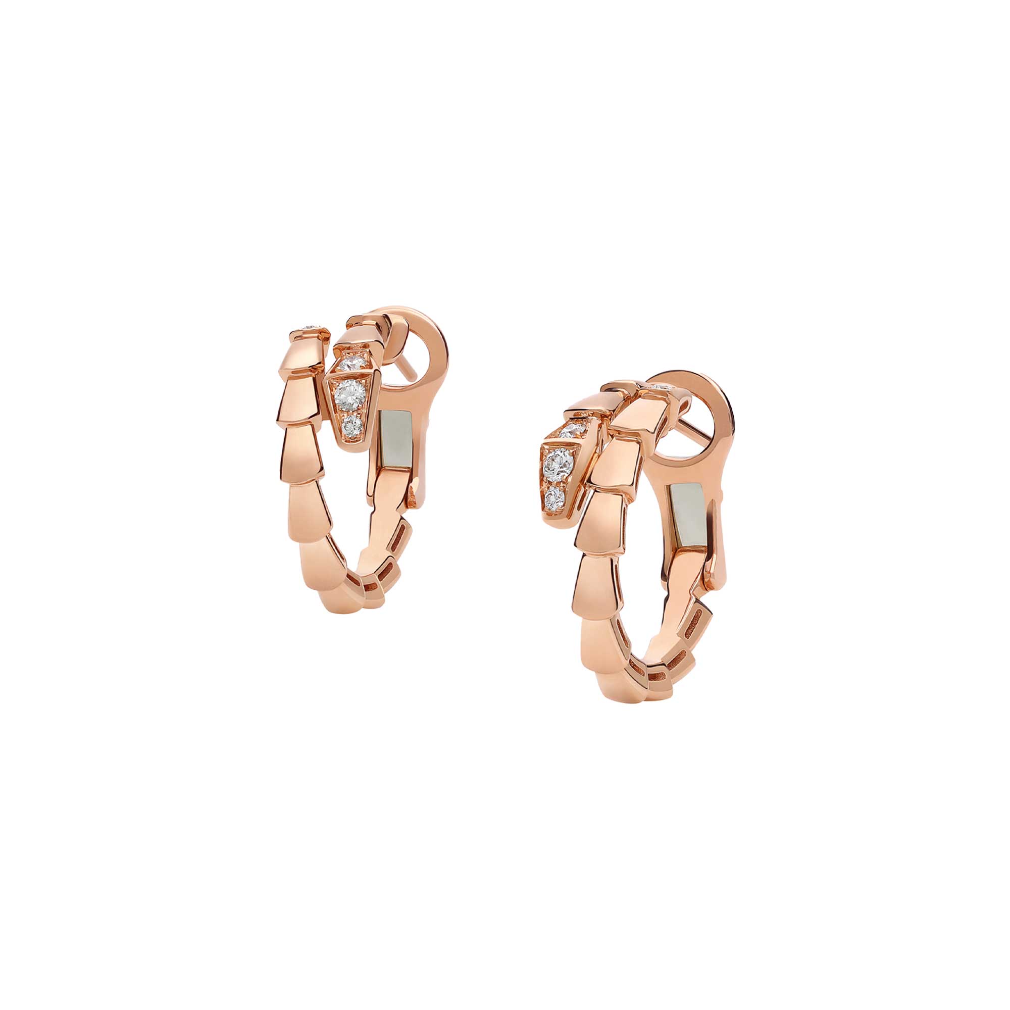 Orecchini Serpenti Viper a cerchio in oro rosa 18 kt con semi-pavé di diamanti