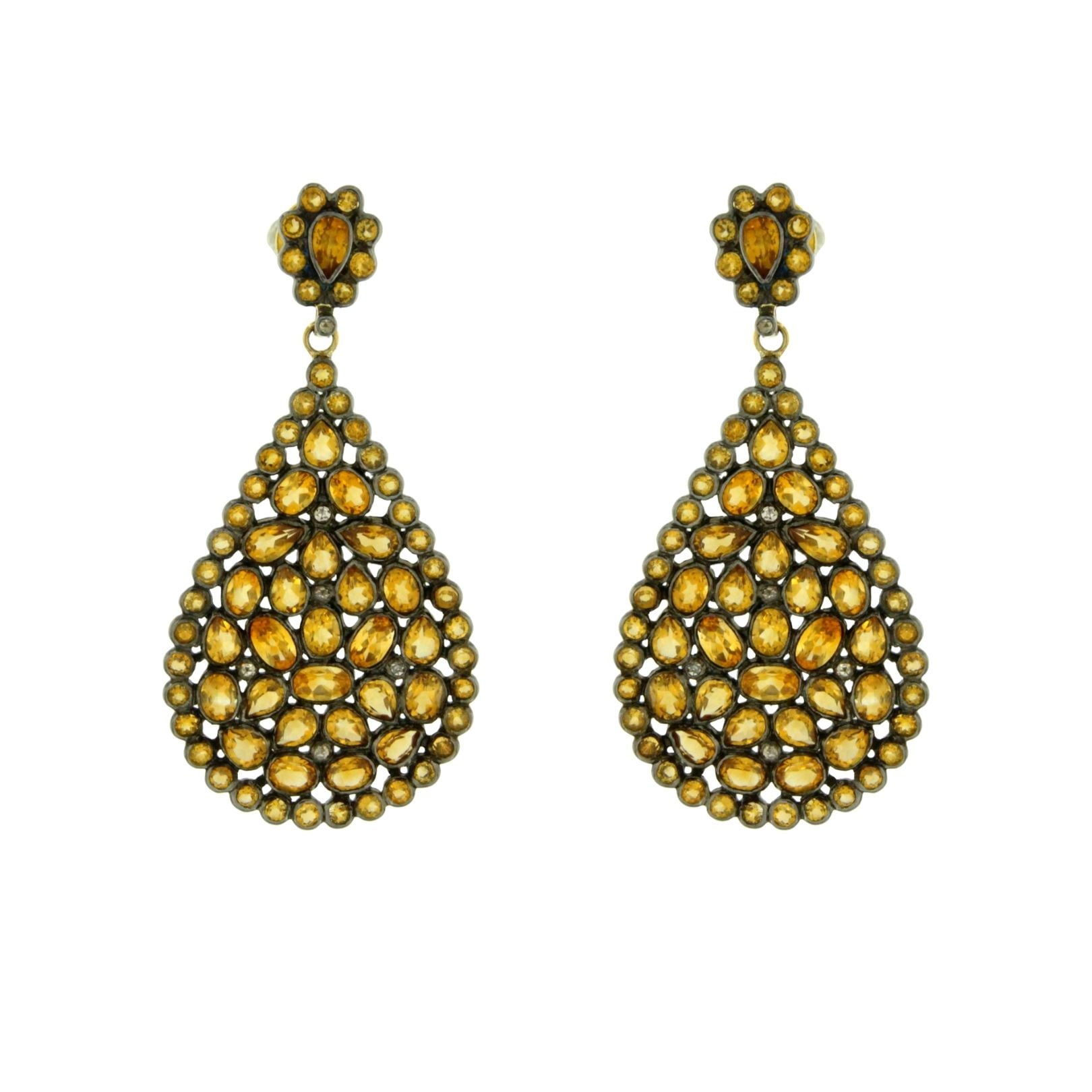 Orecchini a goccia Oriental quarzi citrino fanno parte della collezione di gioielli importati dall’India . Realizzati a mano con pietre naturali, argento e oro.