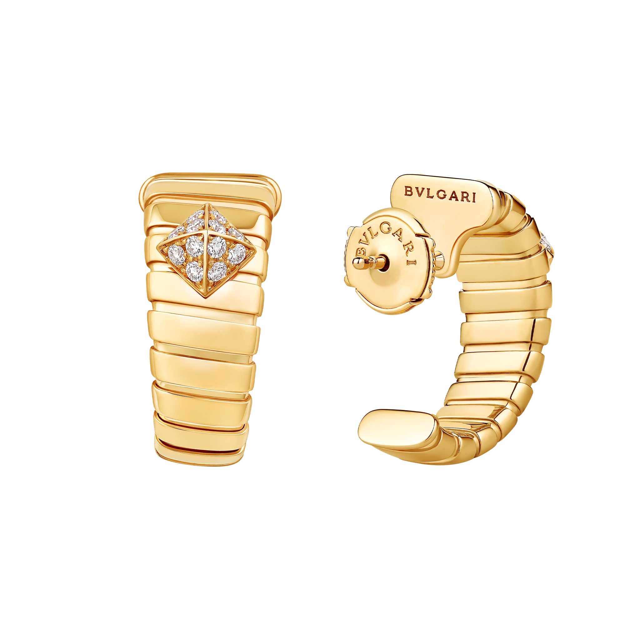 Orecchini Bvlgari Tubogas a cerchio oro giallo borchie pavé di diamanti