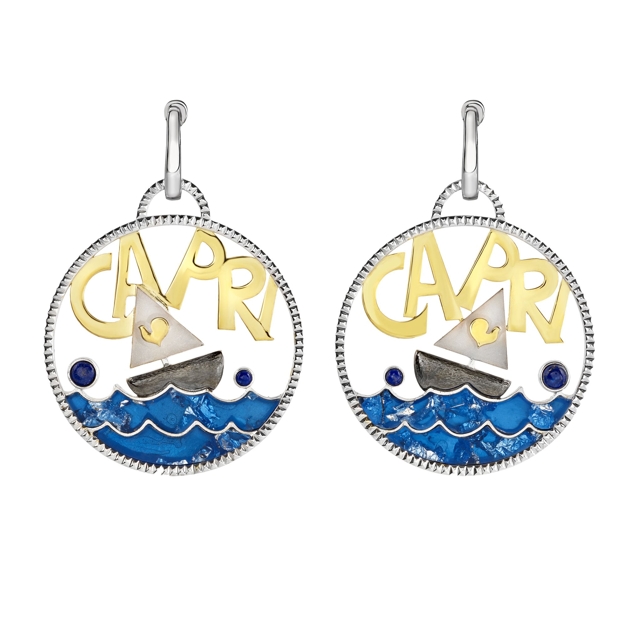 SKU: 44086Orecchini in argento con logo Moonlight in madreperla e bioresina colore del mare.