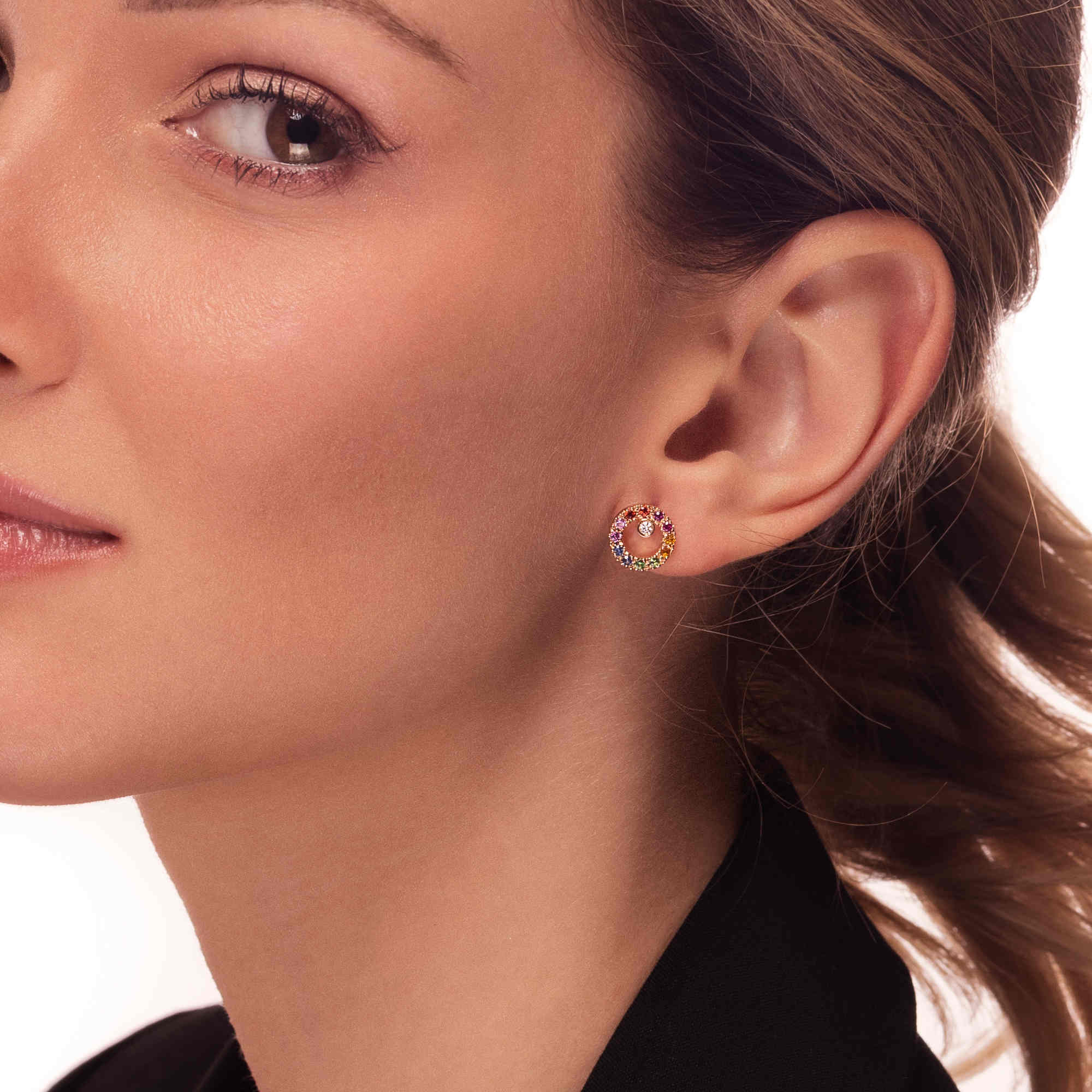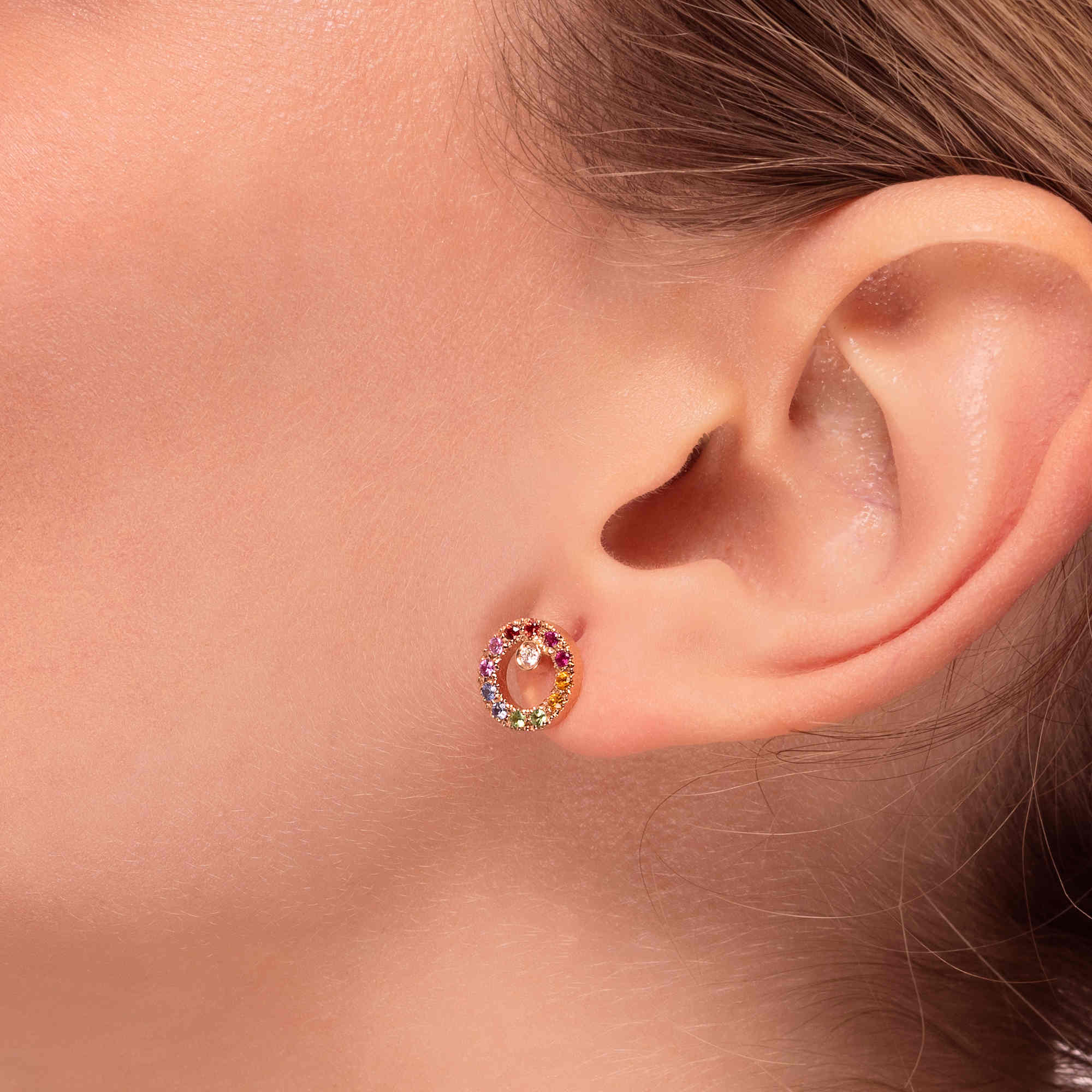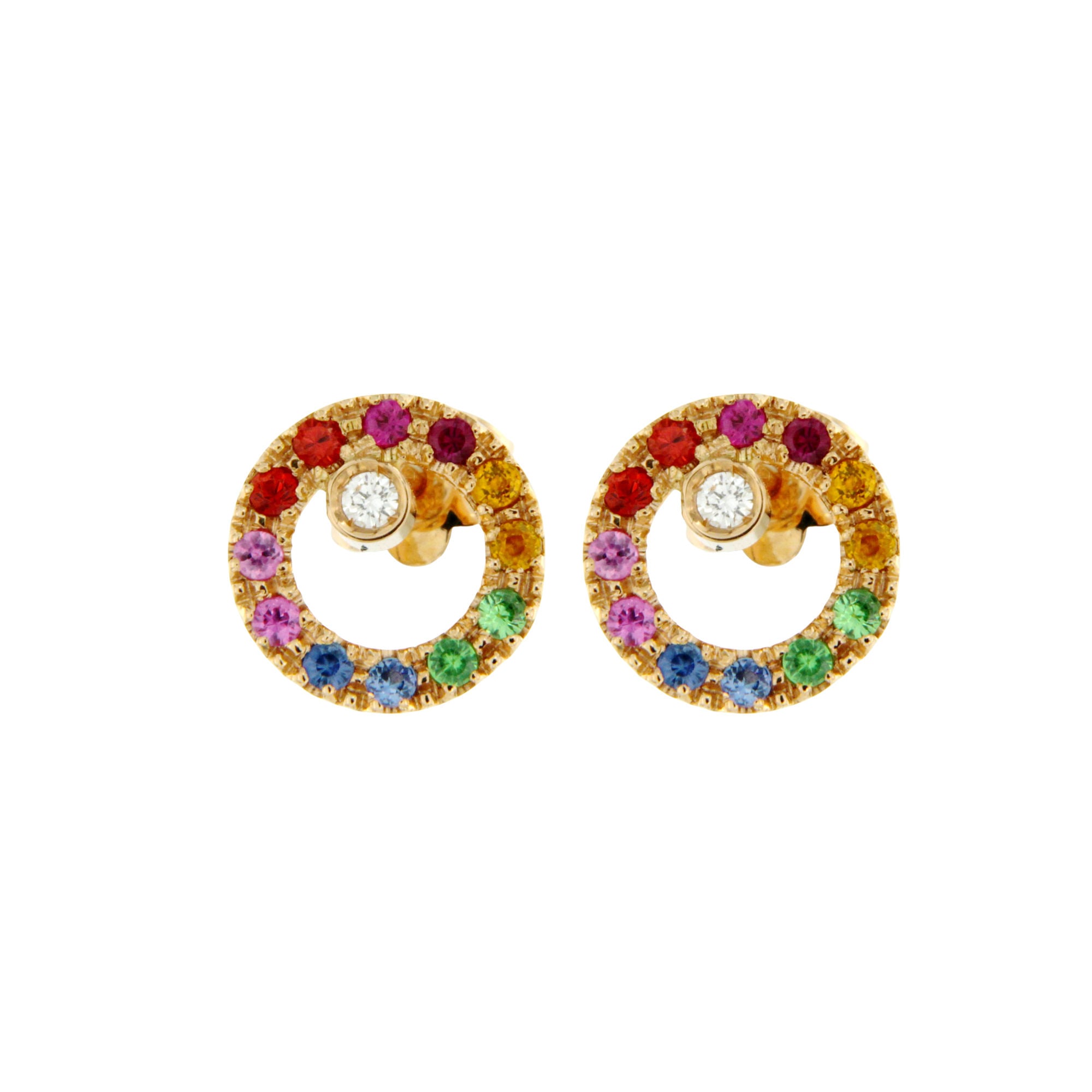 SKU: GAI_OR_15_ZOrecchini oro rosa con diamanti, zaffiri e smeraldi multicolor.