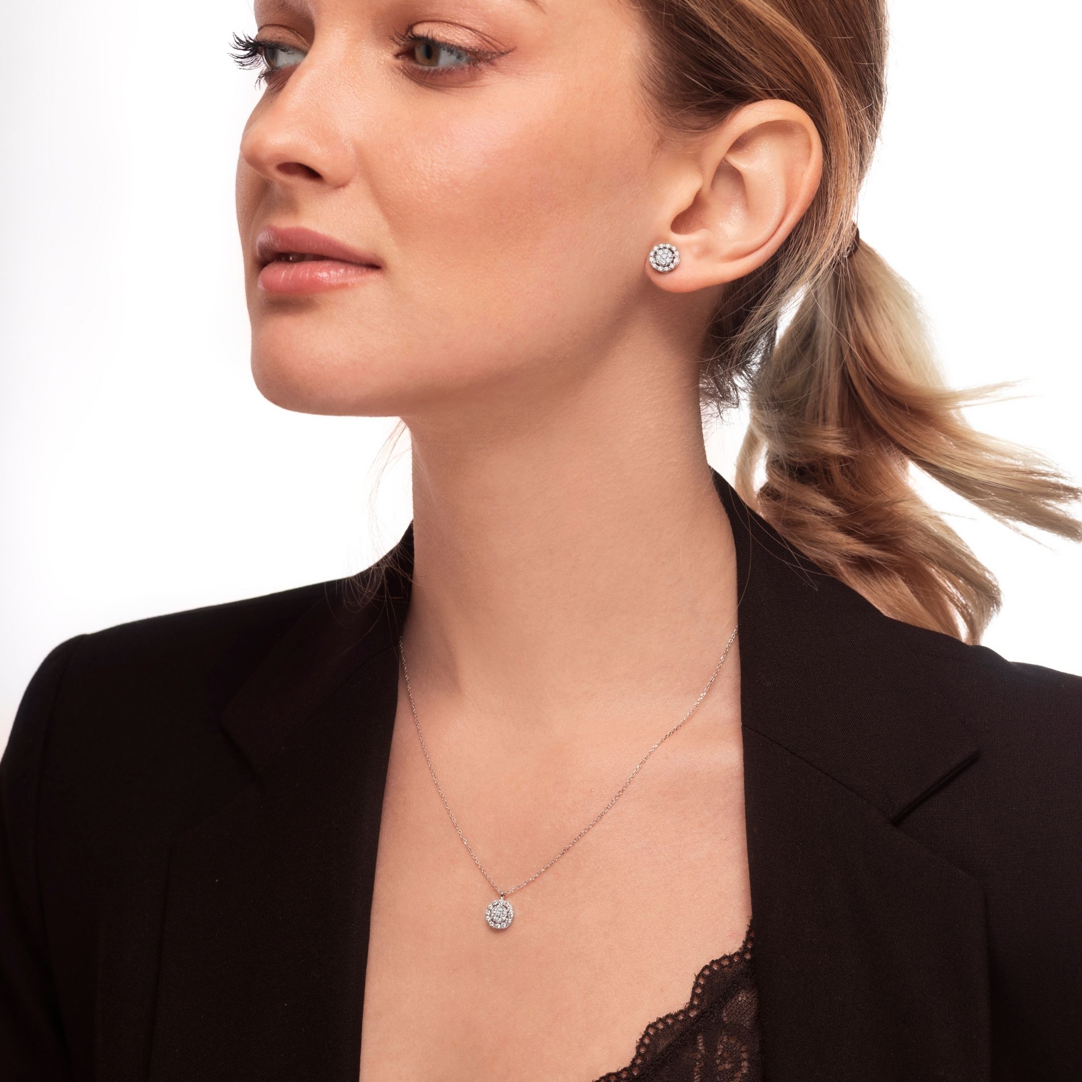 Orecchini Circles in oro bianco e brillanti, si distinguono per la luminosità e per la maestria nella realizzazione; fanno parte della gioielleria classica con brillanti destinata ad un pubblico di tutte le età con un ottimo rapporto qualità prezzo. Ogni gioiello corredato da un certificato di garanzia con foto e caratteristiche che ne attestano la qualità ed autenticità. Tutti i nostri gioielli con brillanti e pietre preziose sono corredati da un certificato di autenticità.
