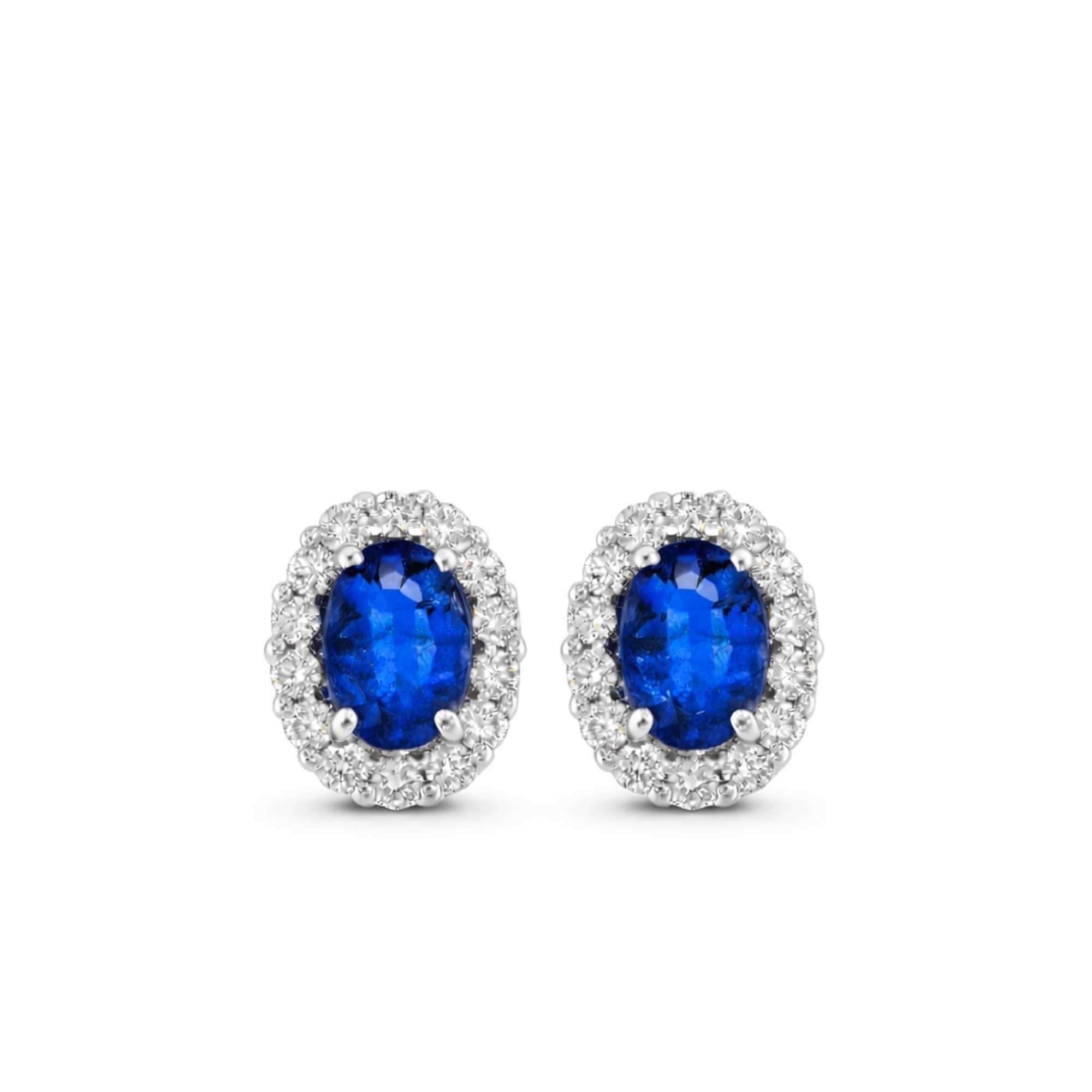 Bon Ton orecchini ovali oro bianco con zaffiri e brillanti – zaffiri ct.0,96 e brillanti ct.0,40