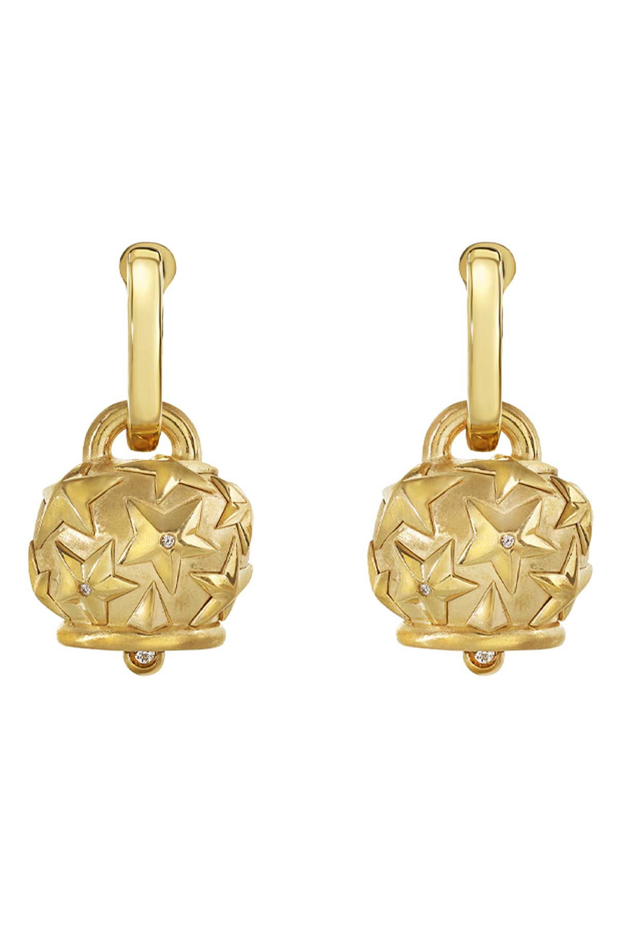 SKU: 44358Orecchini Et Voilà Campanella medi con stelle sbalzate a mano, in argento dorato e diamanti taglio brillante.