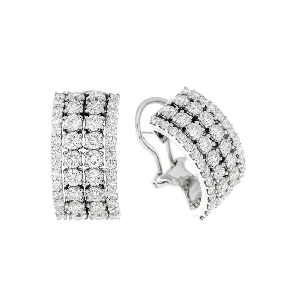 Orecchini griffe 2 file in oro bianco con brillanti