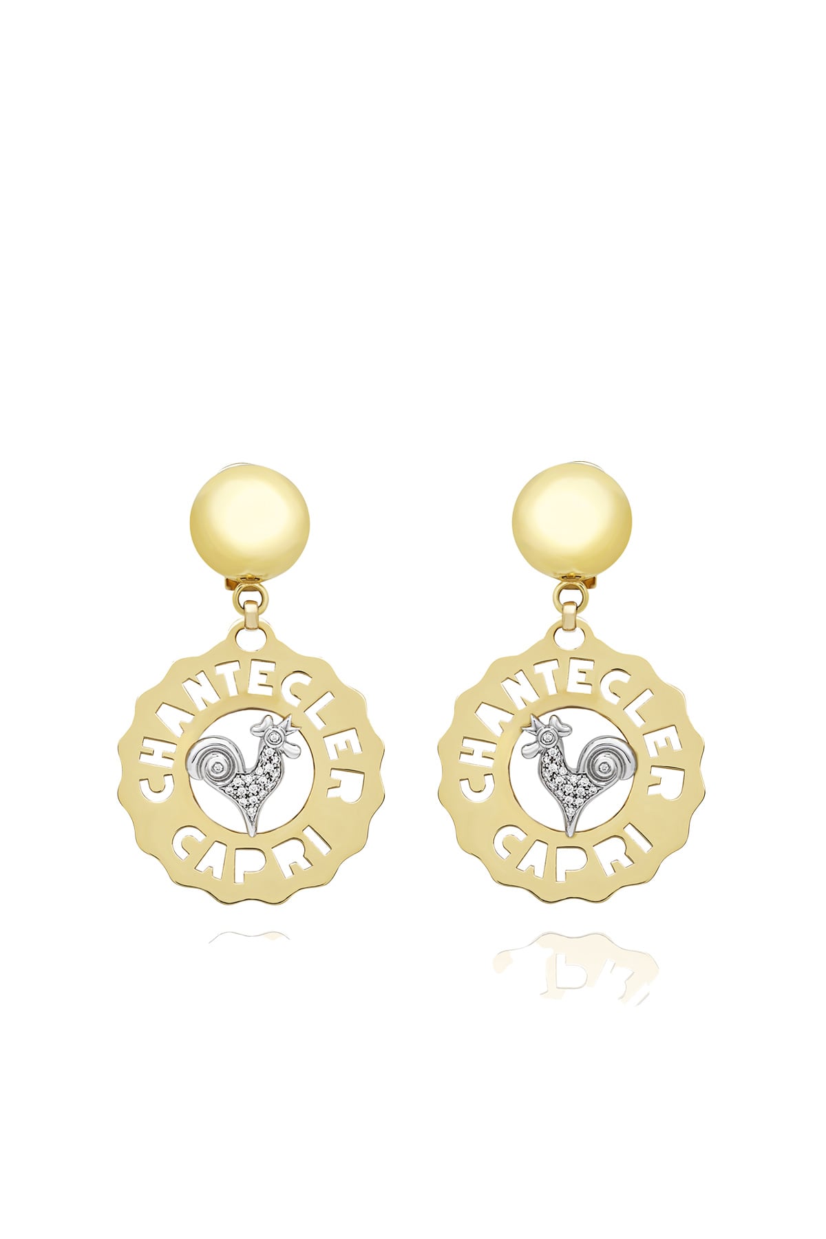 Orecchini Logo Gallo piccoli in oro giallo e bianco 18Kt e diamanti
