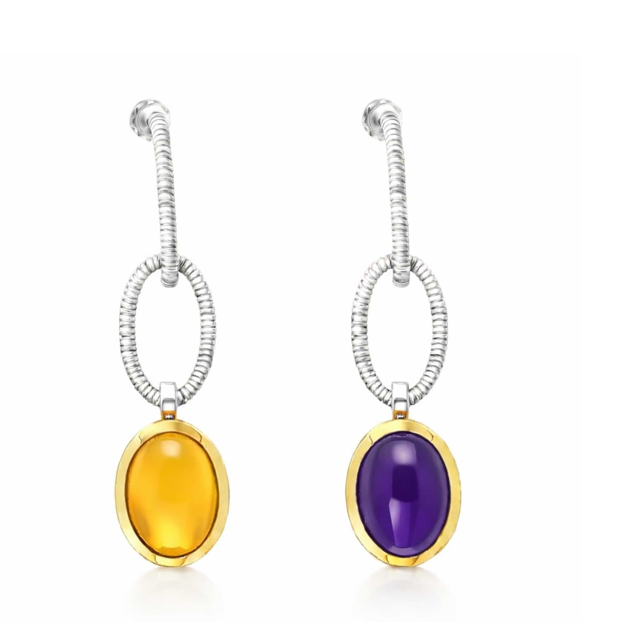Orecchini maglie tubogas con pendenti ametista e quarzo citrino double face
