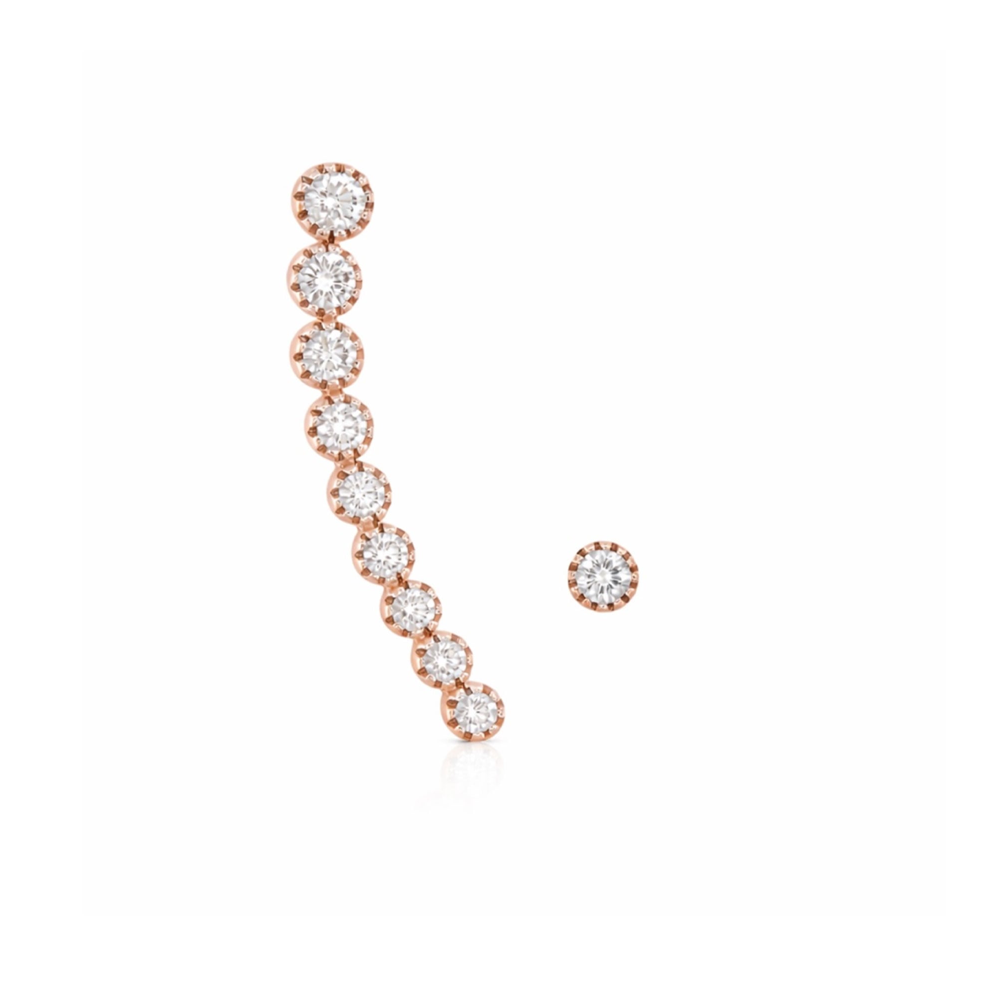 SKU: GAI_OR_06_OROrecchini oro rosa asimmetrici con brillanti. Un orecchino ha 9 diamanti degradè ed uno è monopietra