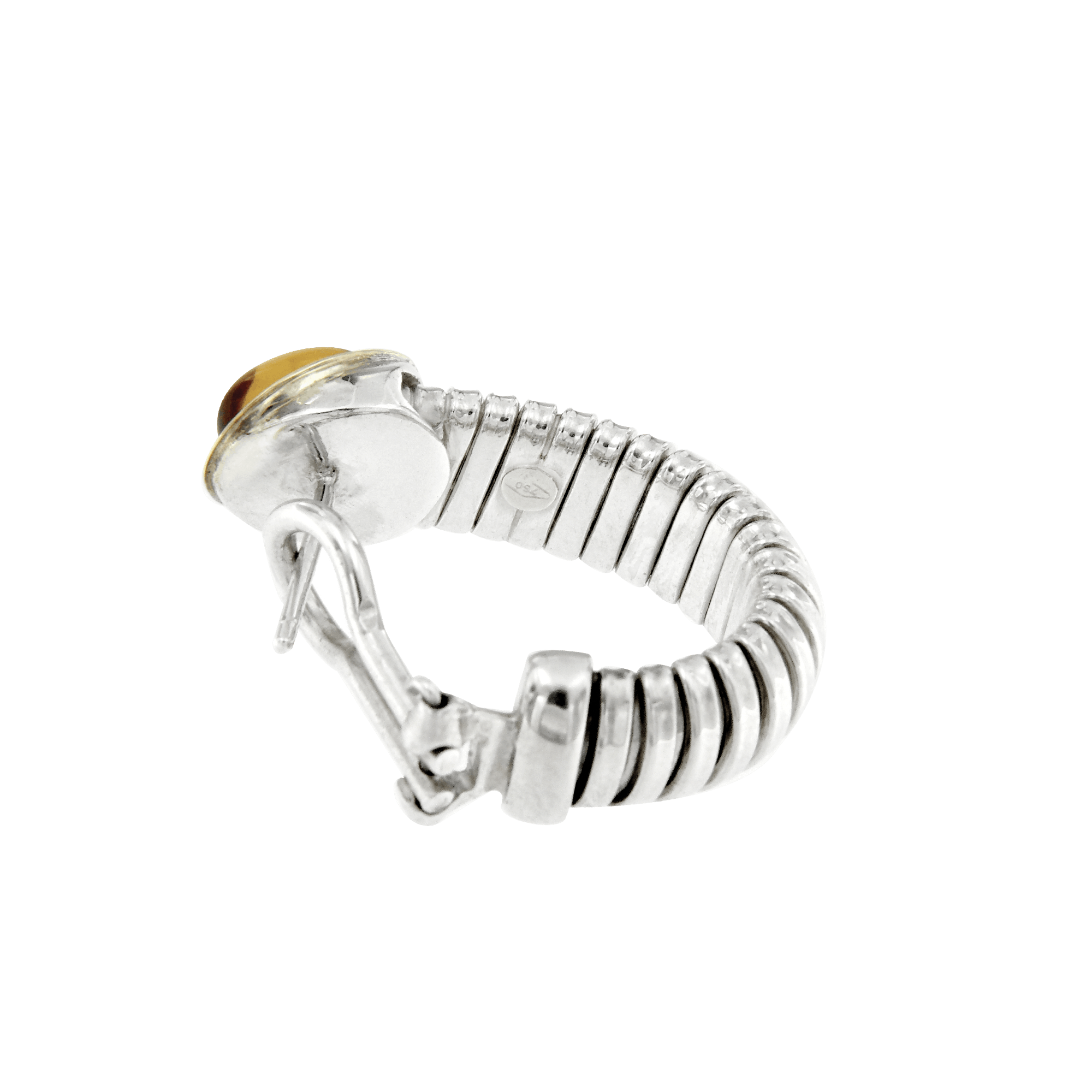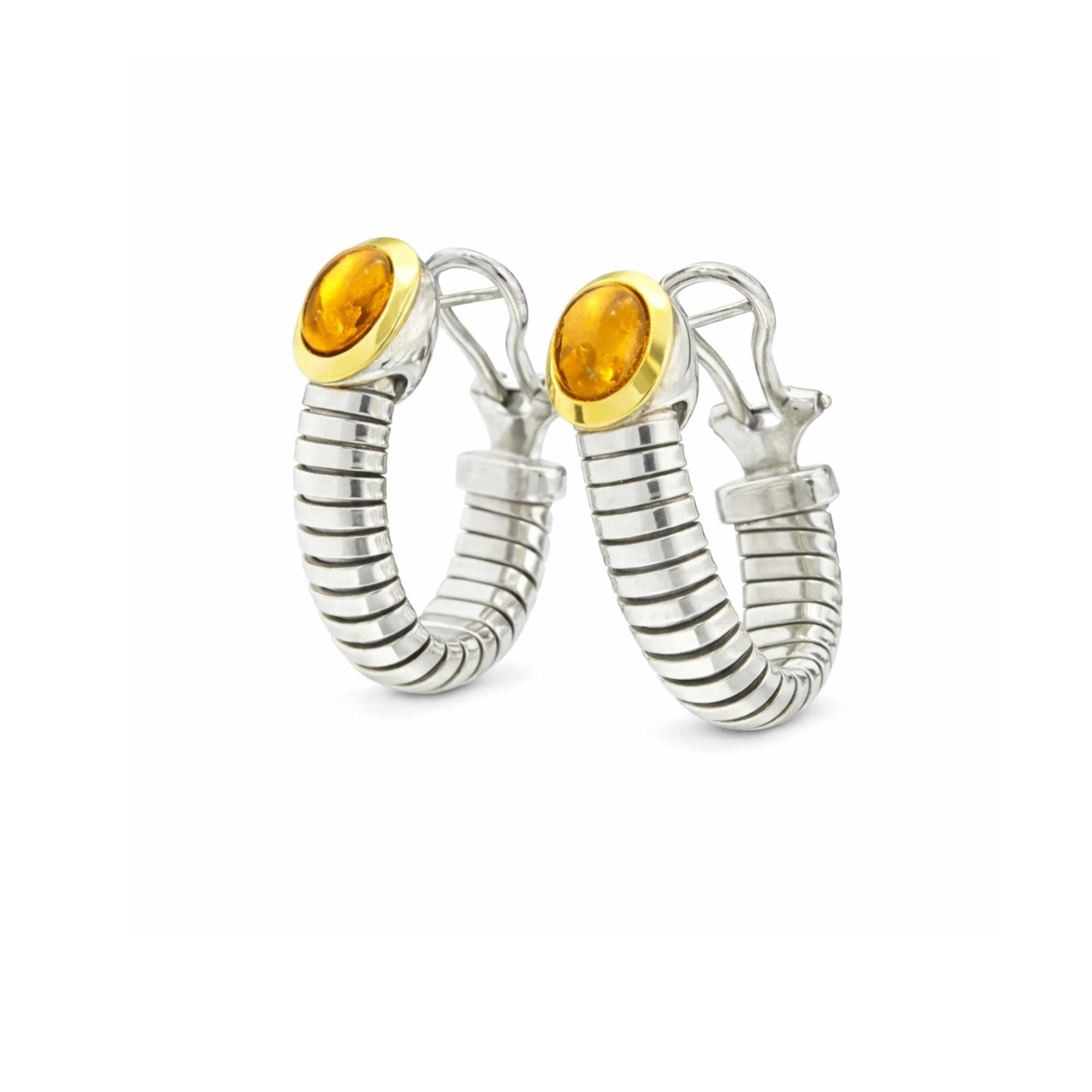 Orecchini Tubogas Argento, oro e Citrino afferiscono all’età romana, quando un filo intrecciato su se stesso ha dato vita a una maglia che oggi è nota al mondo come tubogas. I patrizi romani indossavano braccialetti flessibili che potevano salire fino all’apice del braccio come se fossero avvolti nelle spire di un rettile splendente.