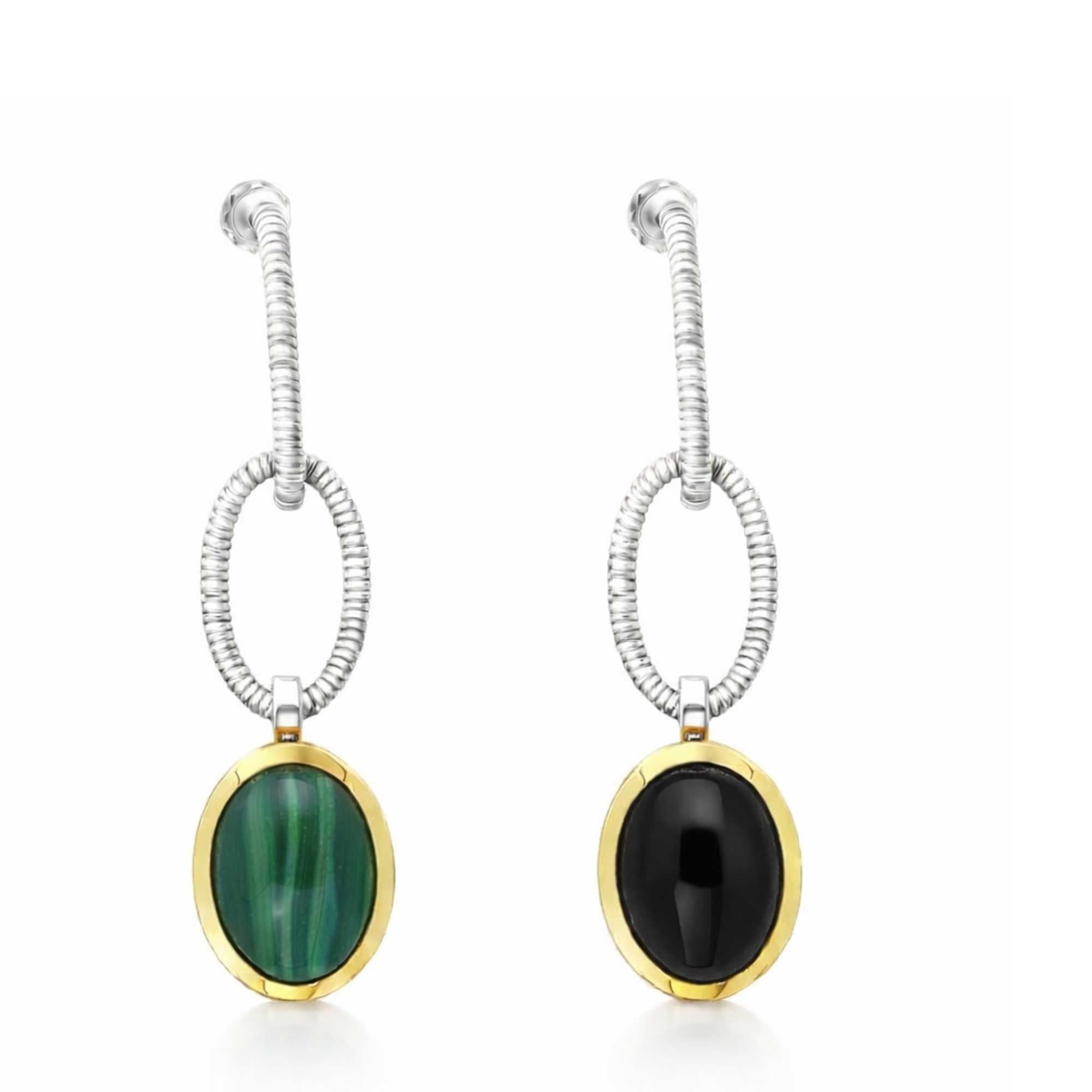 ORECCHINI TUBOGAS PENDENTI ONICE E MALACHITE DOUBLE