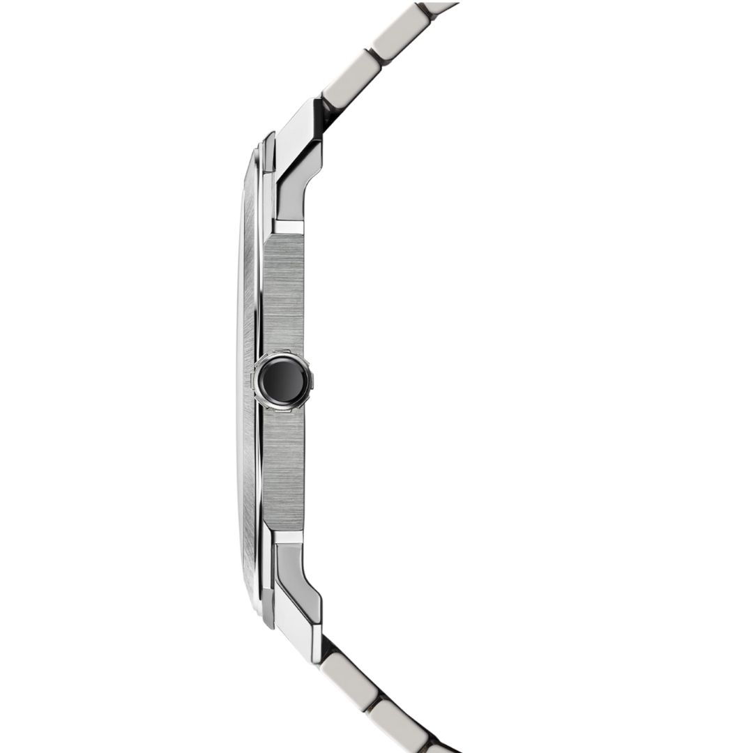 Vera icona del XXI secolo, l’orologio Octo Finissimo Automatique esalta lo straordinario connubio tra design italiano e ingegneria svizzera con una sofisticata combinazione di finiture lucide e satinate. Con il suo look accattivante e la sua perfetta architettura interna, questo rivoluzionario orologio unisce all’eccellenza dell’orologeria svizzera la maestria di Bvlgari nell’arte della gioielleria. Un emblema del talento creativo della Maison nella lavorazione di materiali non convenzionali e nella creazione di modelli dal design all’avanguardia.