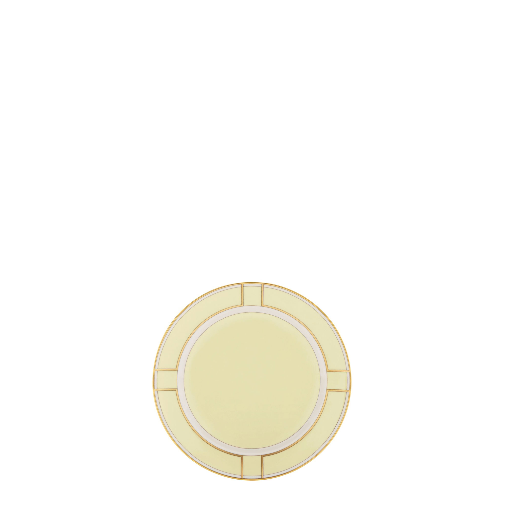 SKU: 008RG00 FPT110010200G00134901Piatto da dessert in porcellana con decoro Giallo e oro. Nuova collezione Diva.