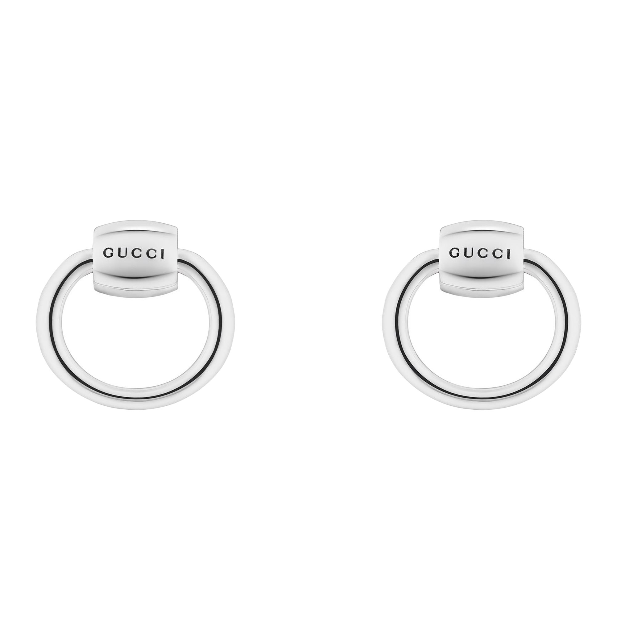 l motivo ispirato alla cultura equestre conferisce il suo fascino a diverse silhouette. Questo paio di orecchini presenta due piccoli cerchi che richiamano la struttura del caratteristico Morsetto. L’incisione Gucci completa il design.