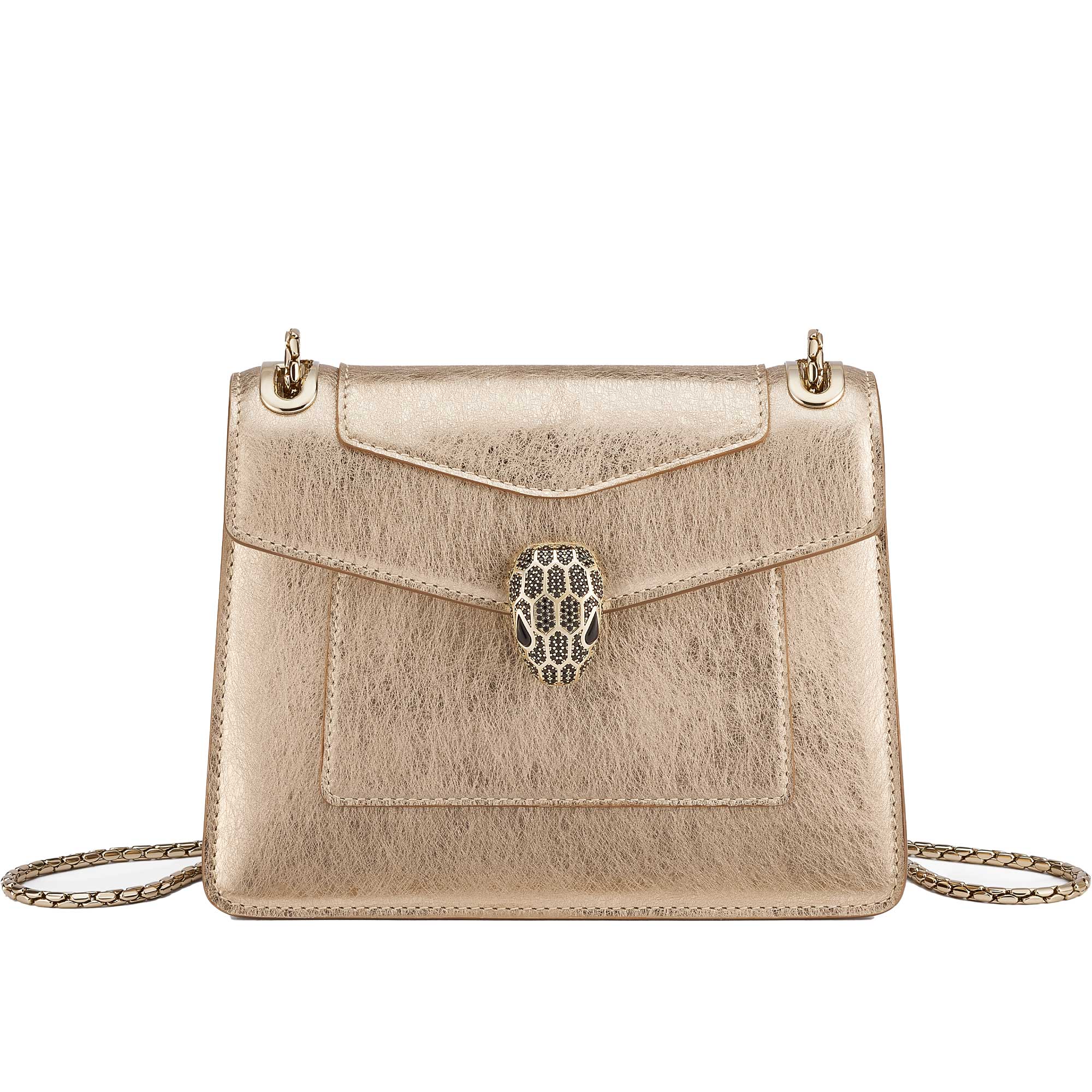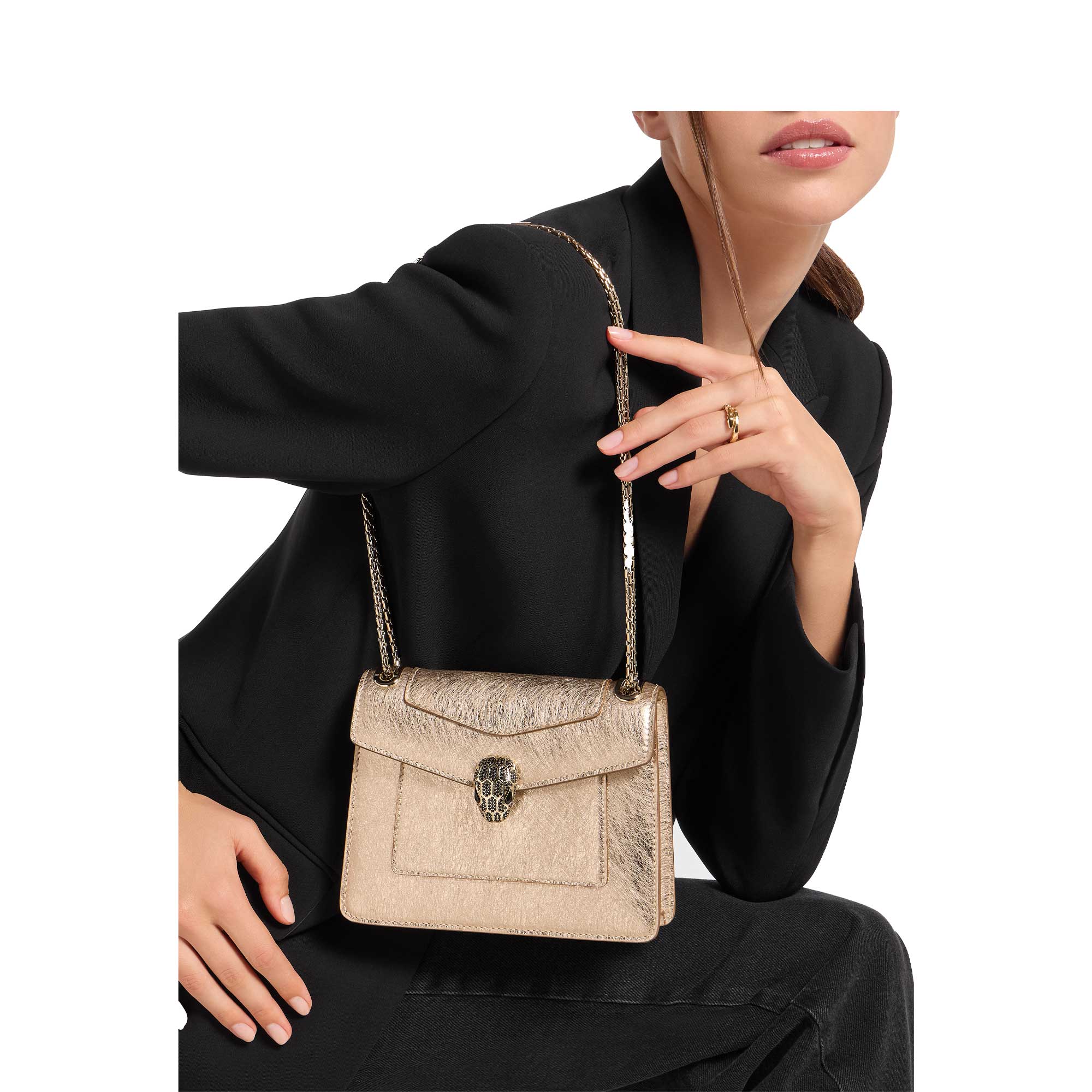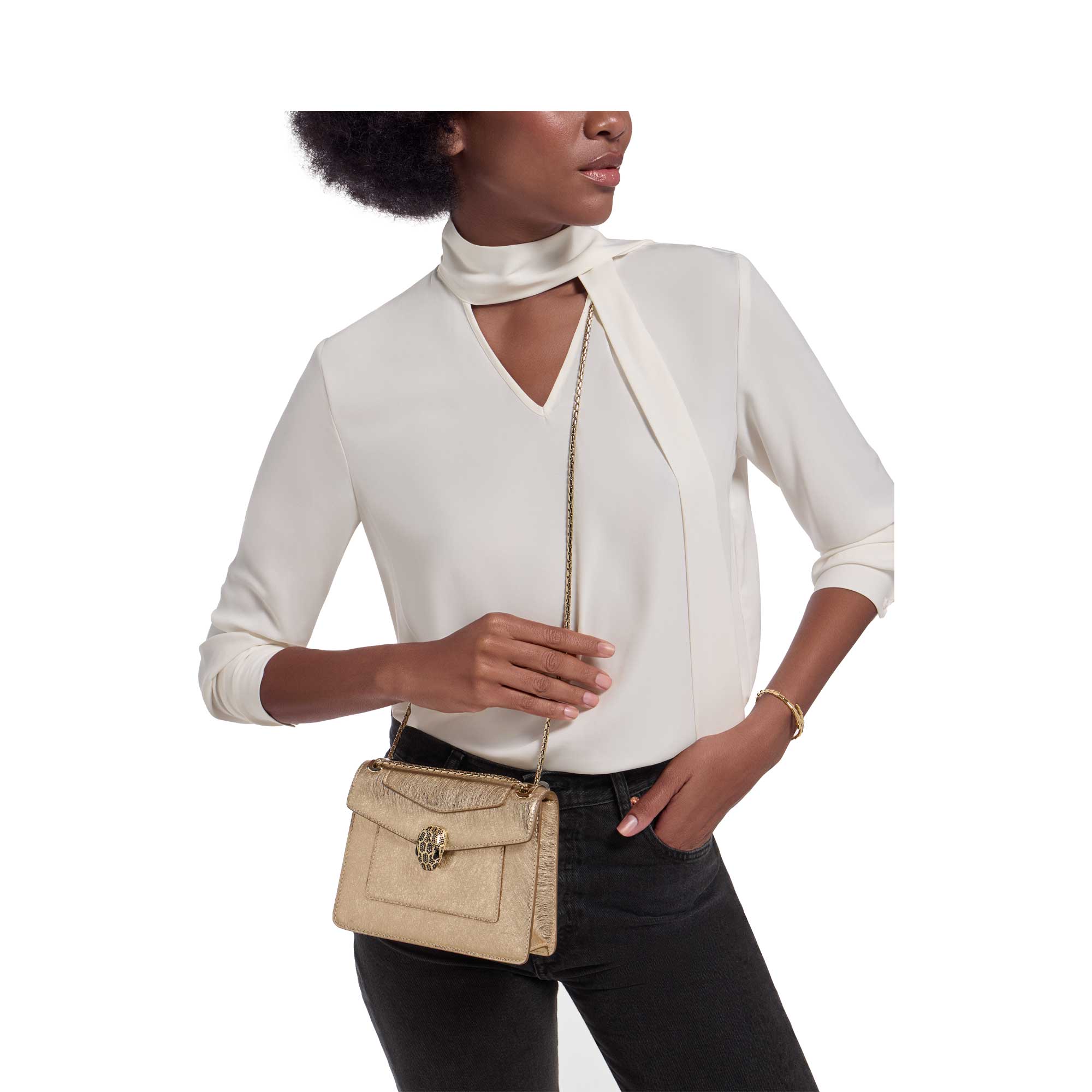 SKU: 294245Borsa a spalla Serpenti Forever Day-to-Night in vitello Striated oro chiaro.