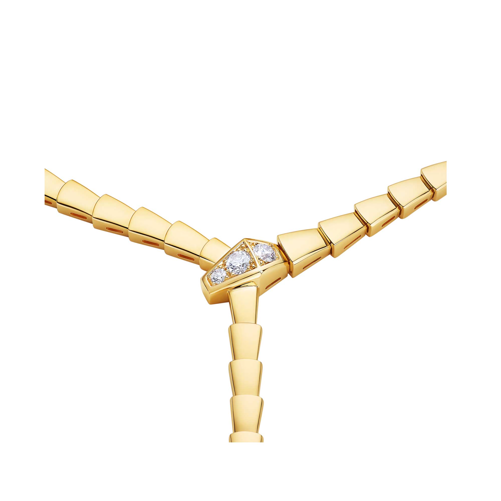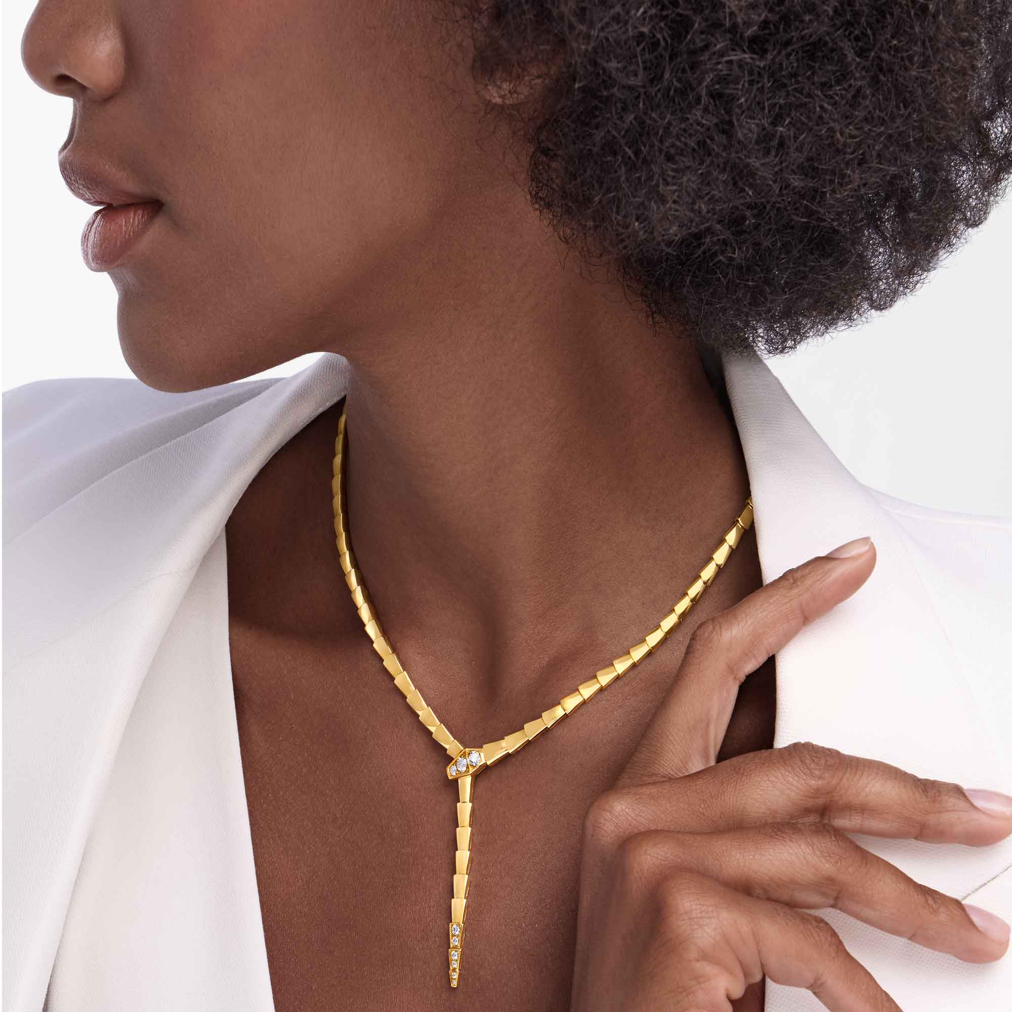 Con la purezza delle sue forme, le sue avvolgenti geometrie e il suo fascino carismatico, la collana Serpenti Viper in oro giallo 18 kt con semi-pavé di diamanti rivisita in chiave ultra-minimale la celebre icona del design Bvlgari, simbolo di infinite metamorfosi.