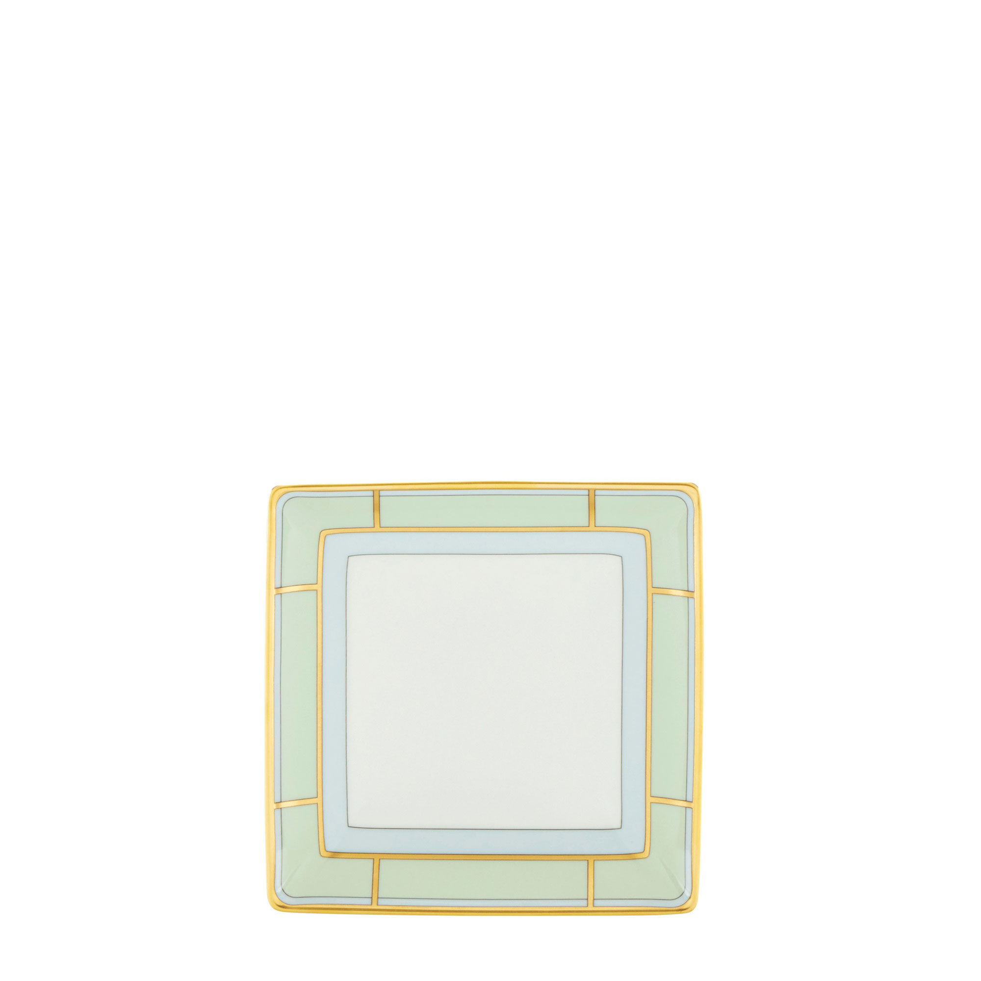SKU: 172RG01 FCP220LX13XG00134900Svuotatasche quadrato in porcellana con decoro Verde e oro. Nuova collezione Diva.