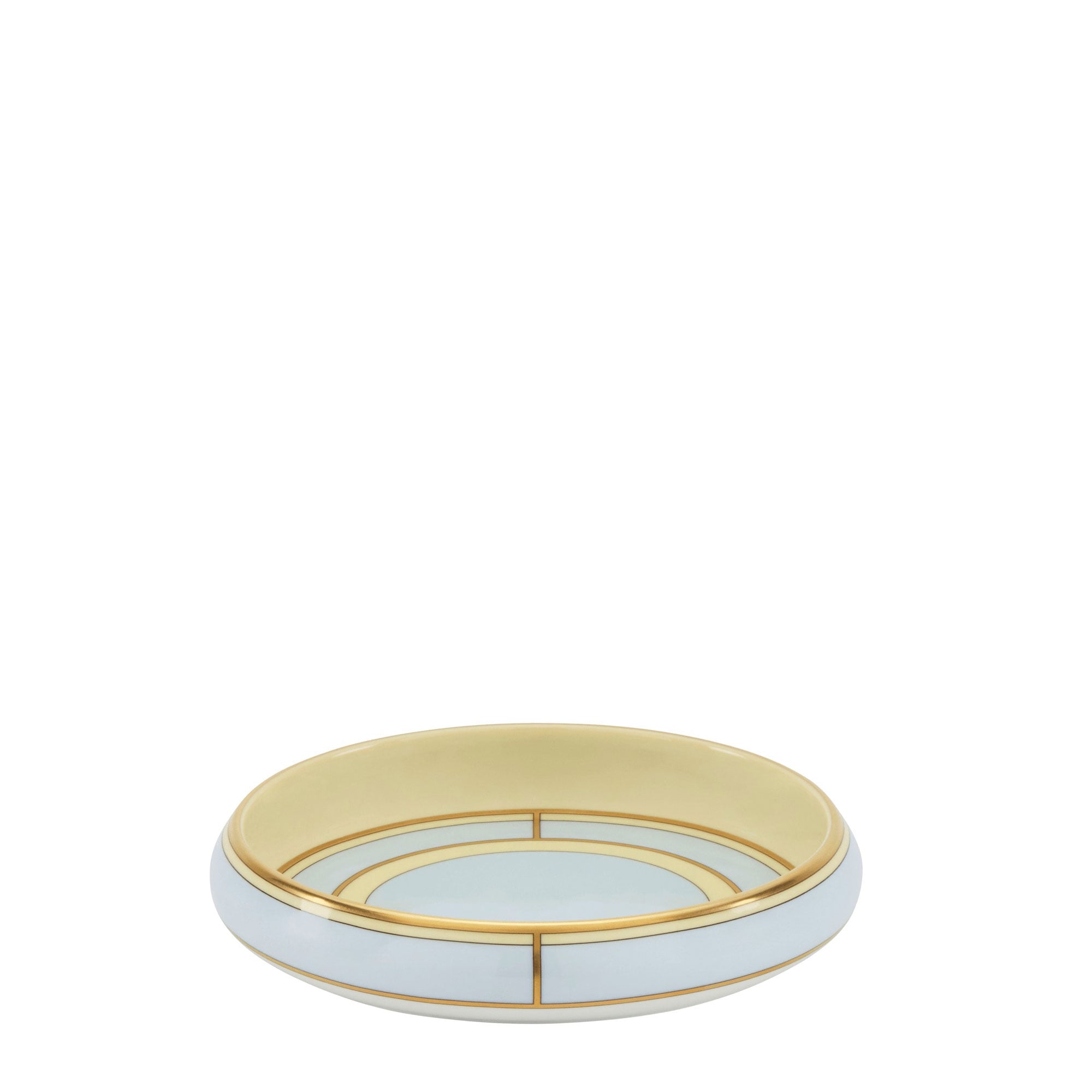 SKU: 017RG00 FCO108LX0170G00134903Svuotatasche rotondo in porcellana con decoro Celeste e oro. Nuova collezione Diva.